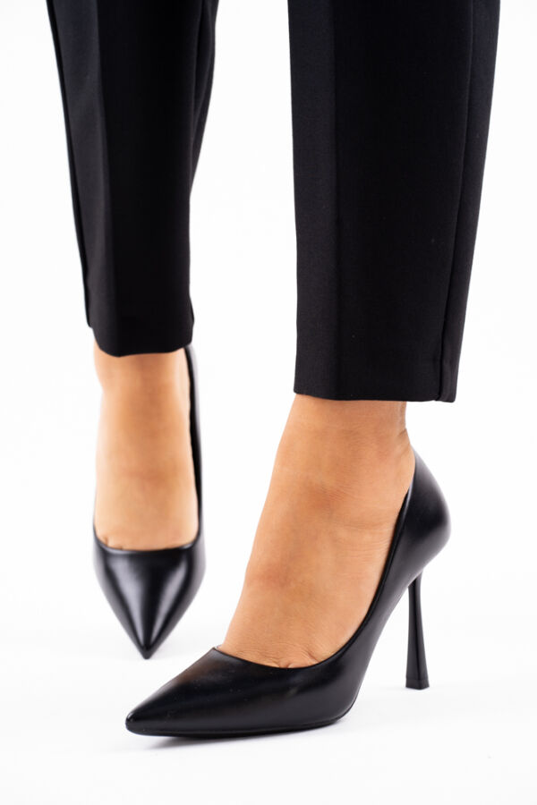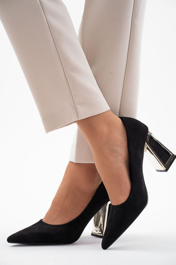 Czarne zamszowe czółenka damskie na złotym obcasie