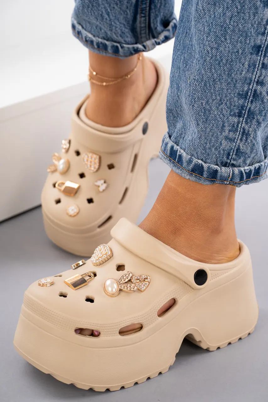 Sklep Beżowe klapki piankowe na grubym spodzie z metalowymi ozdobami Maxi