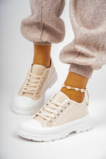 Beżowe krótkie sztruksowe trampki damskie Omis