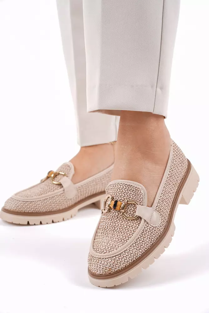 Sklep Beżowe plecione mokasyny damskie z koralikiem