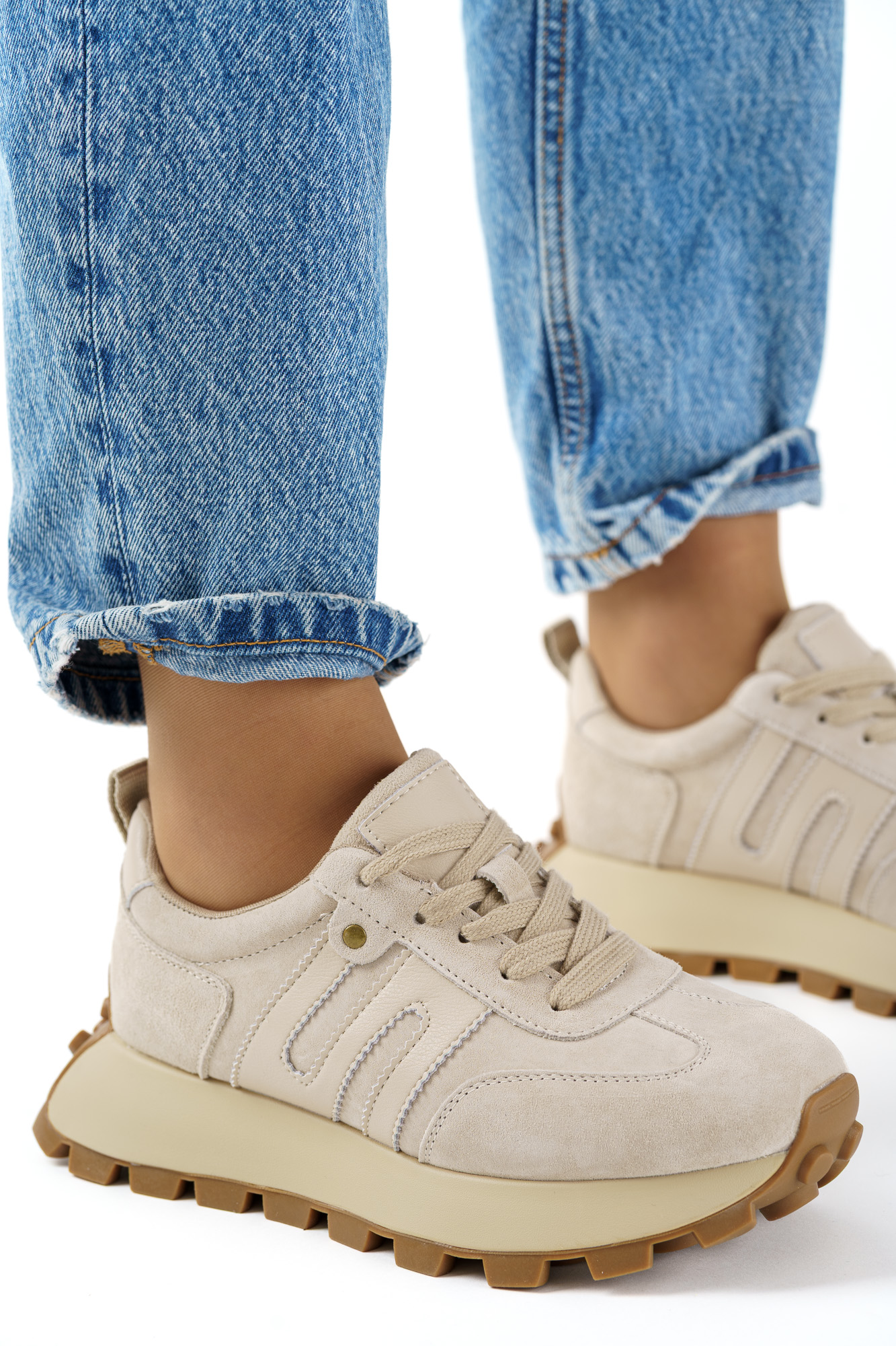 Beżowe skórzane sneakersy damskie wygodne buty sportowe