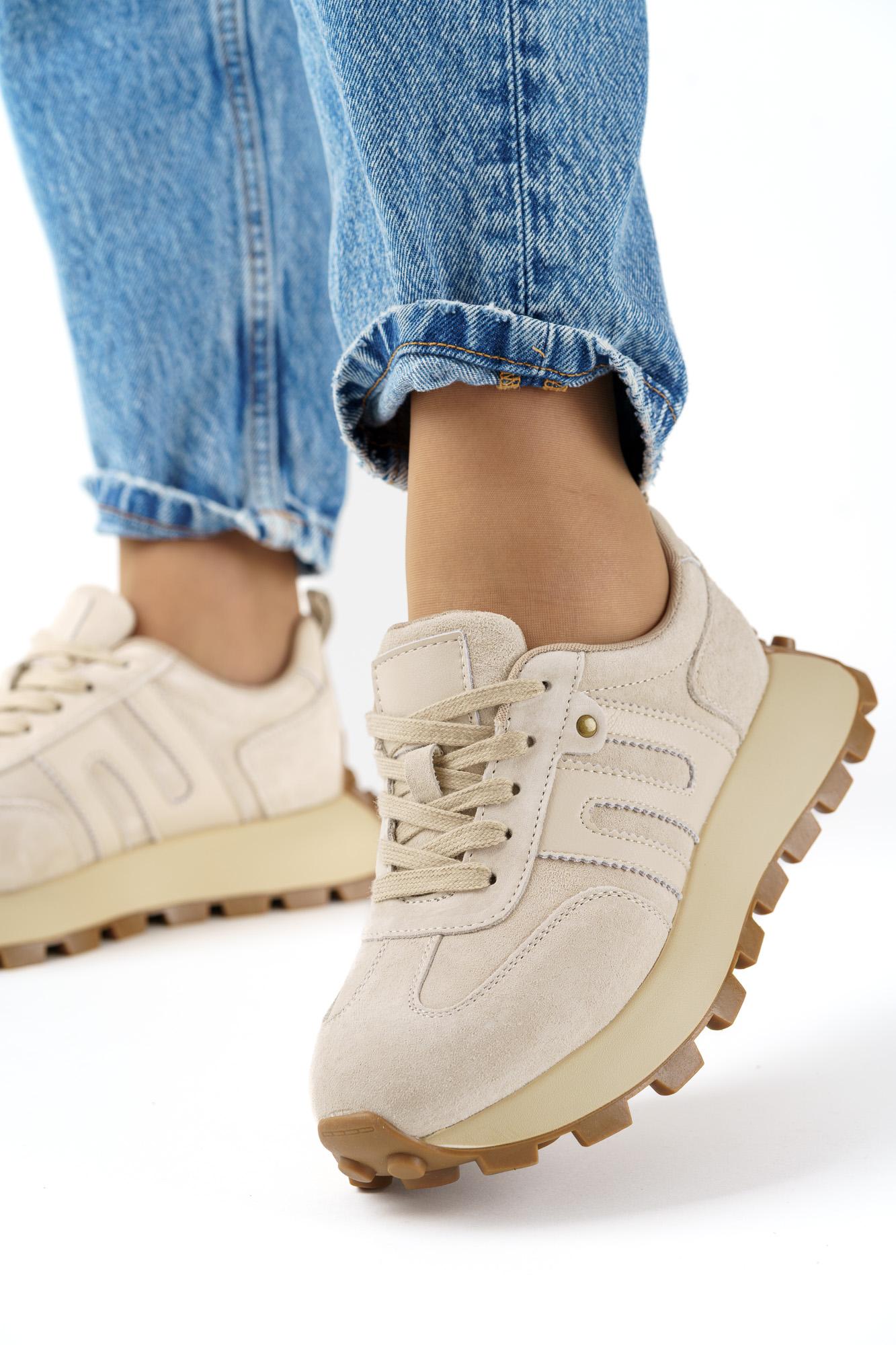 Modne beżowo białe buty sportowe damskie always