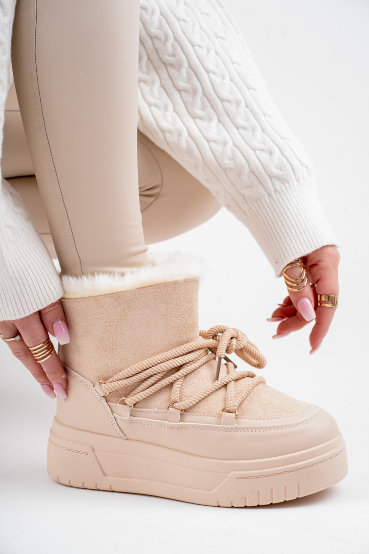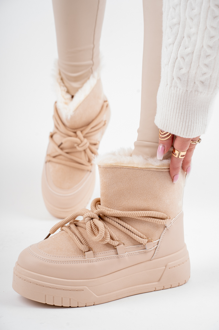 Beżowe śniegowce damskie grubo ocieplane na platformie