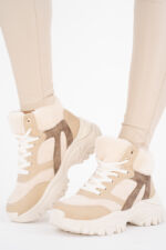 Sklep Beżowe sznurowane botki sportowe śniegowce damskie