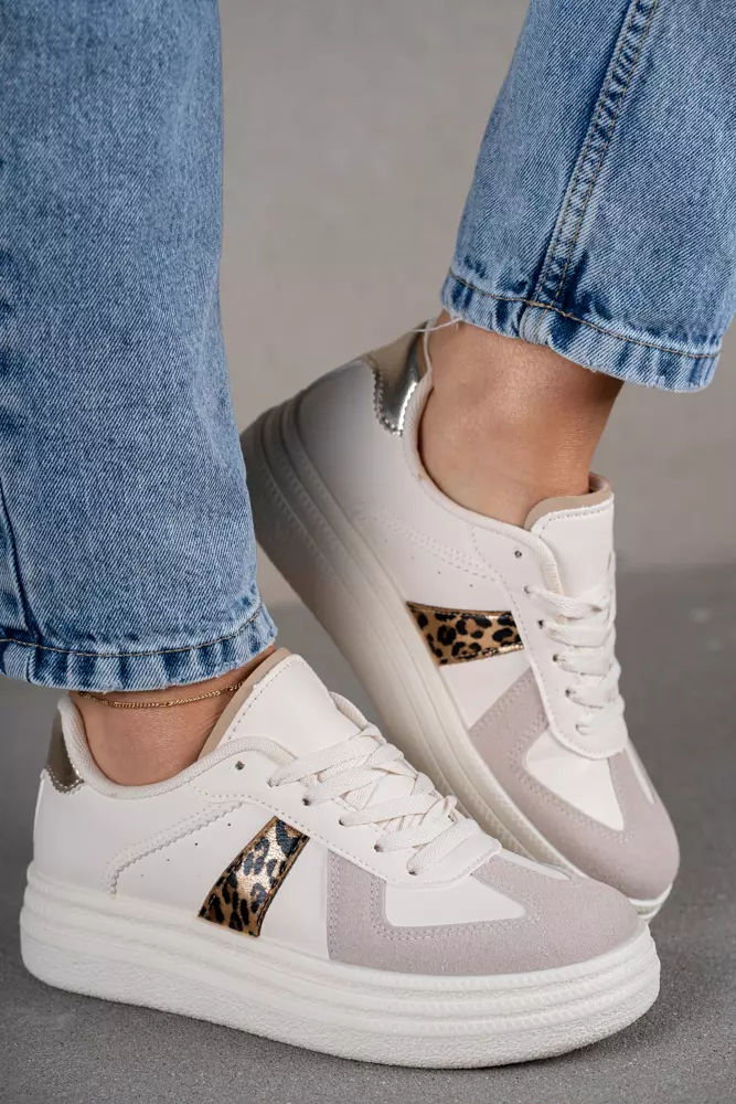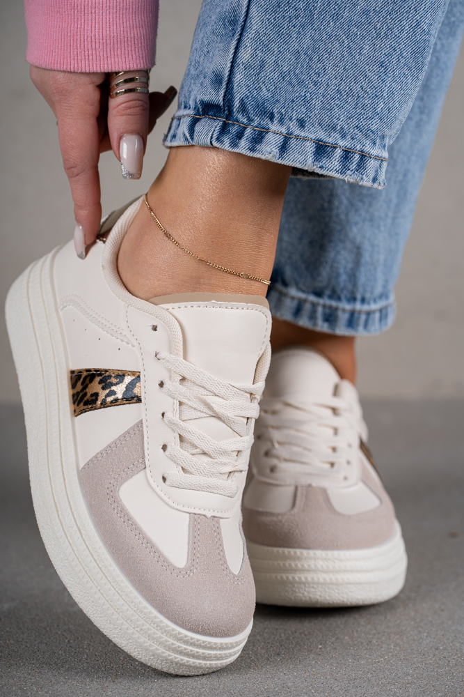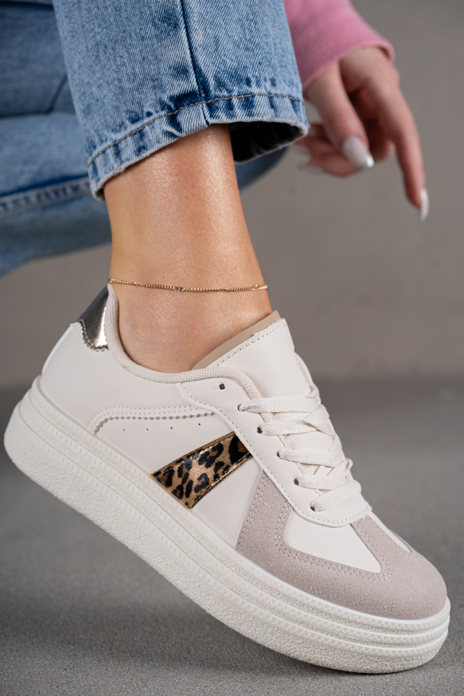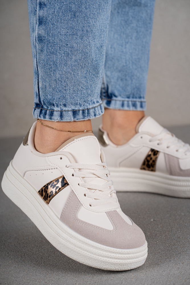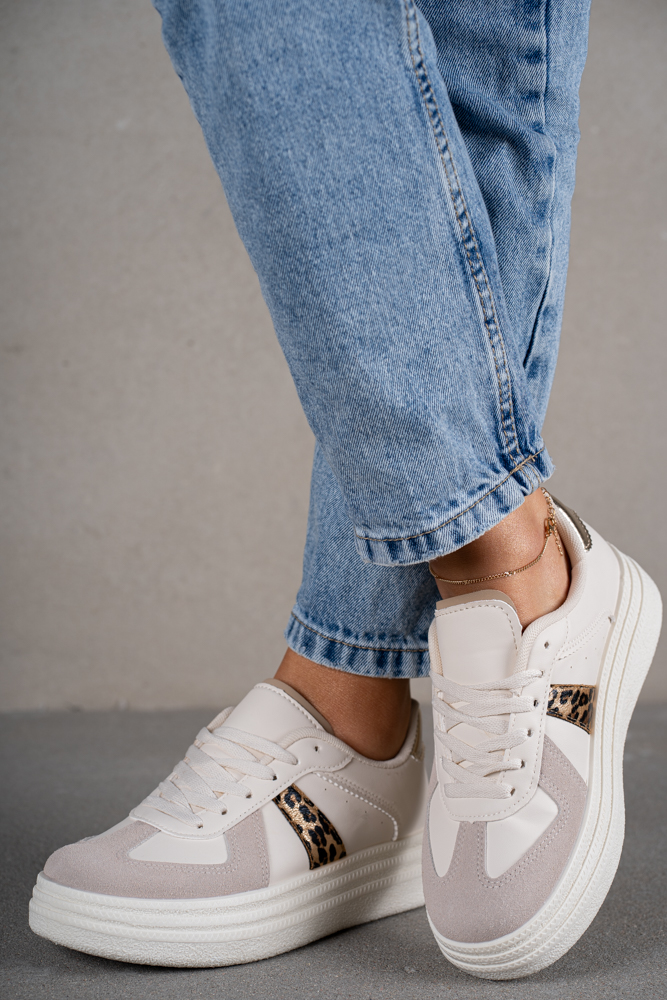 Modne trampki z panterkowymi wstawkami po bokach.