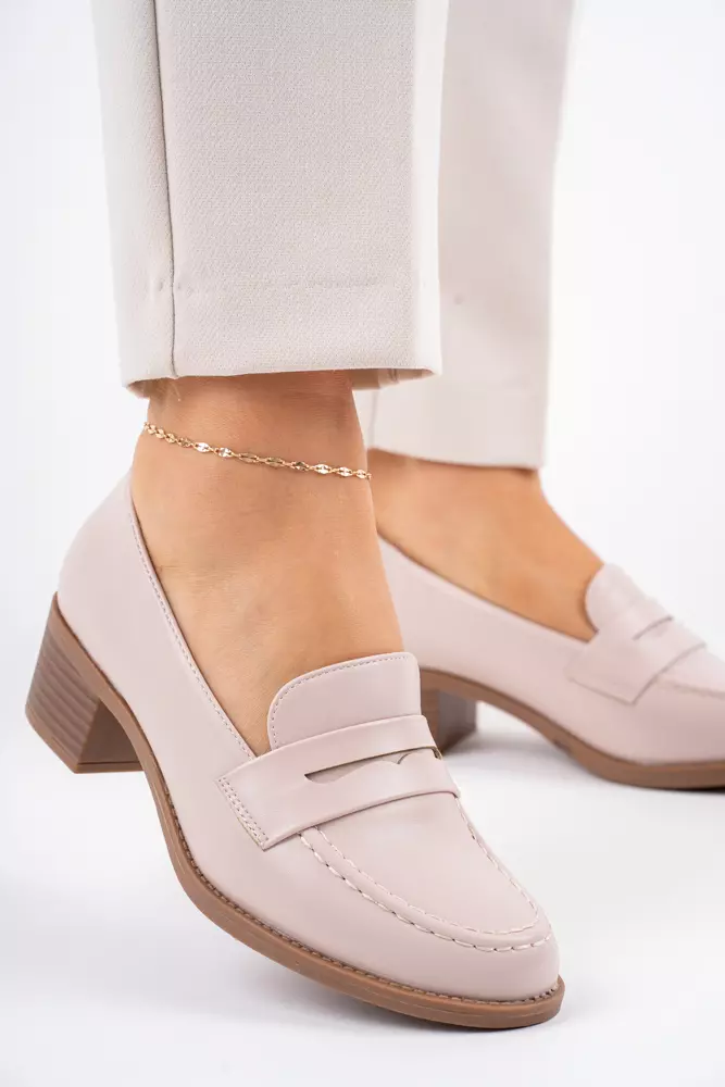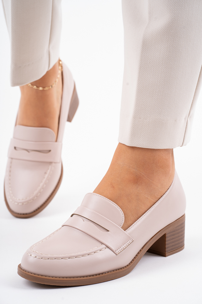 Sklep Beżowe wsuwane mokasyny damskie na niskim obcasie