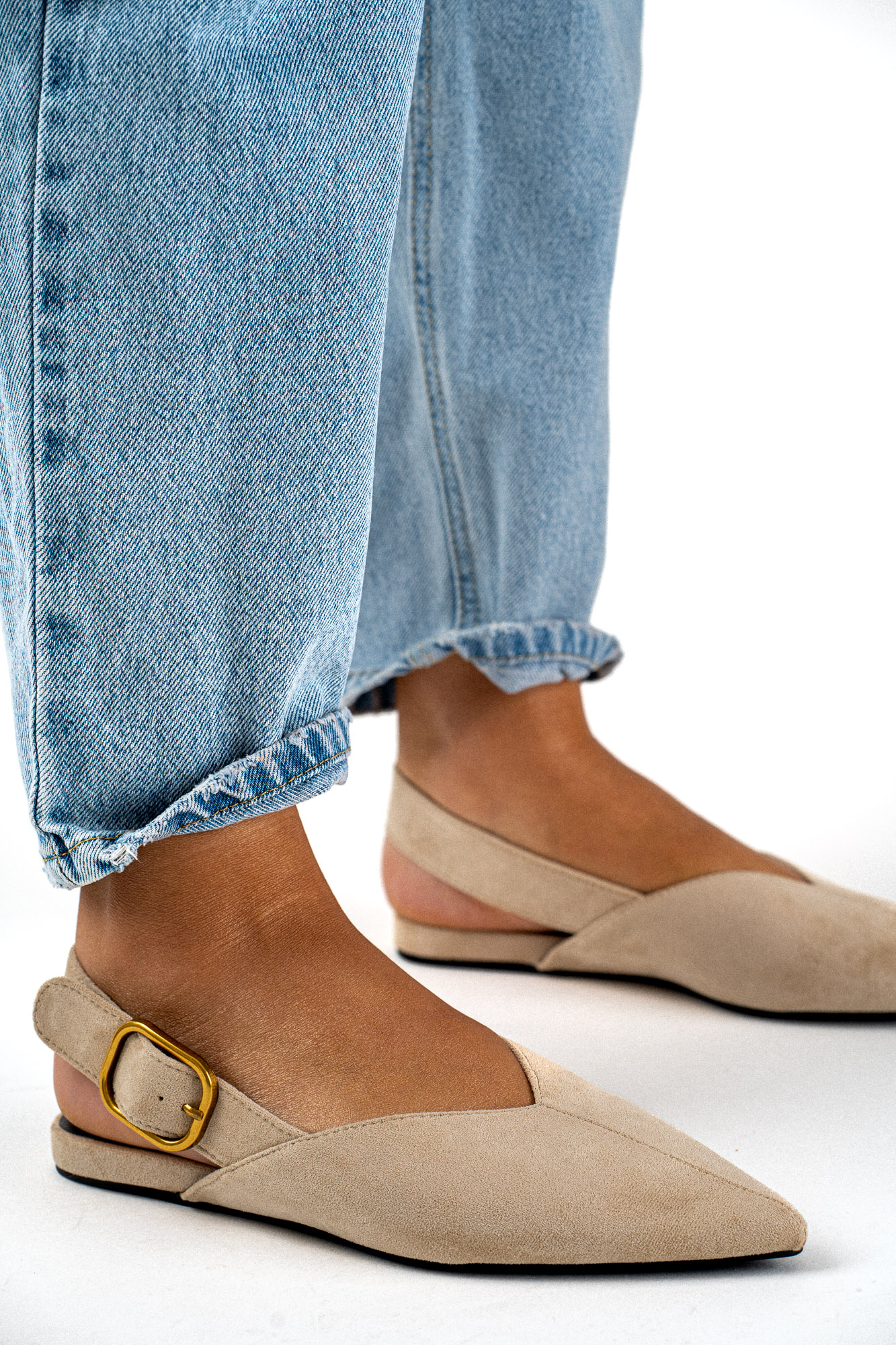 Eleganckie Beżowe baleriny wykonane z miękkiego zamszu.