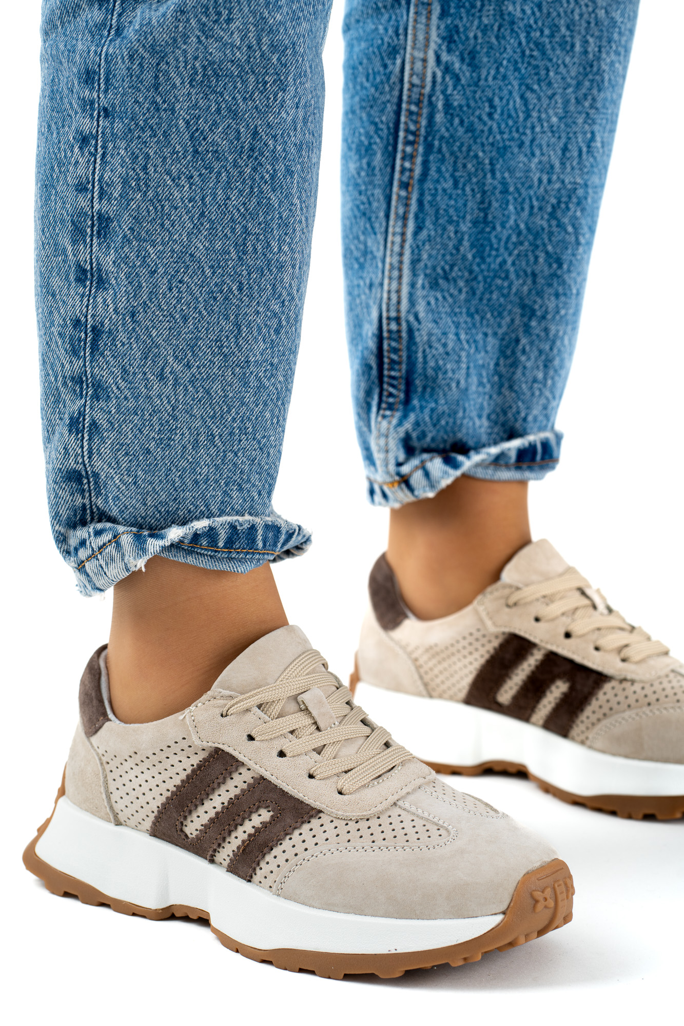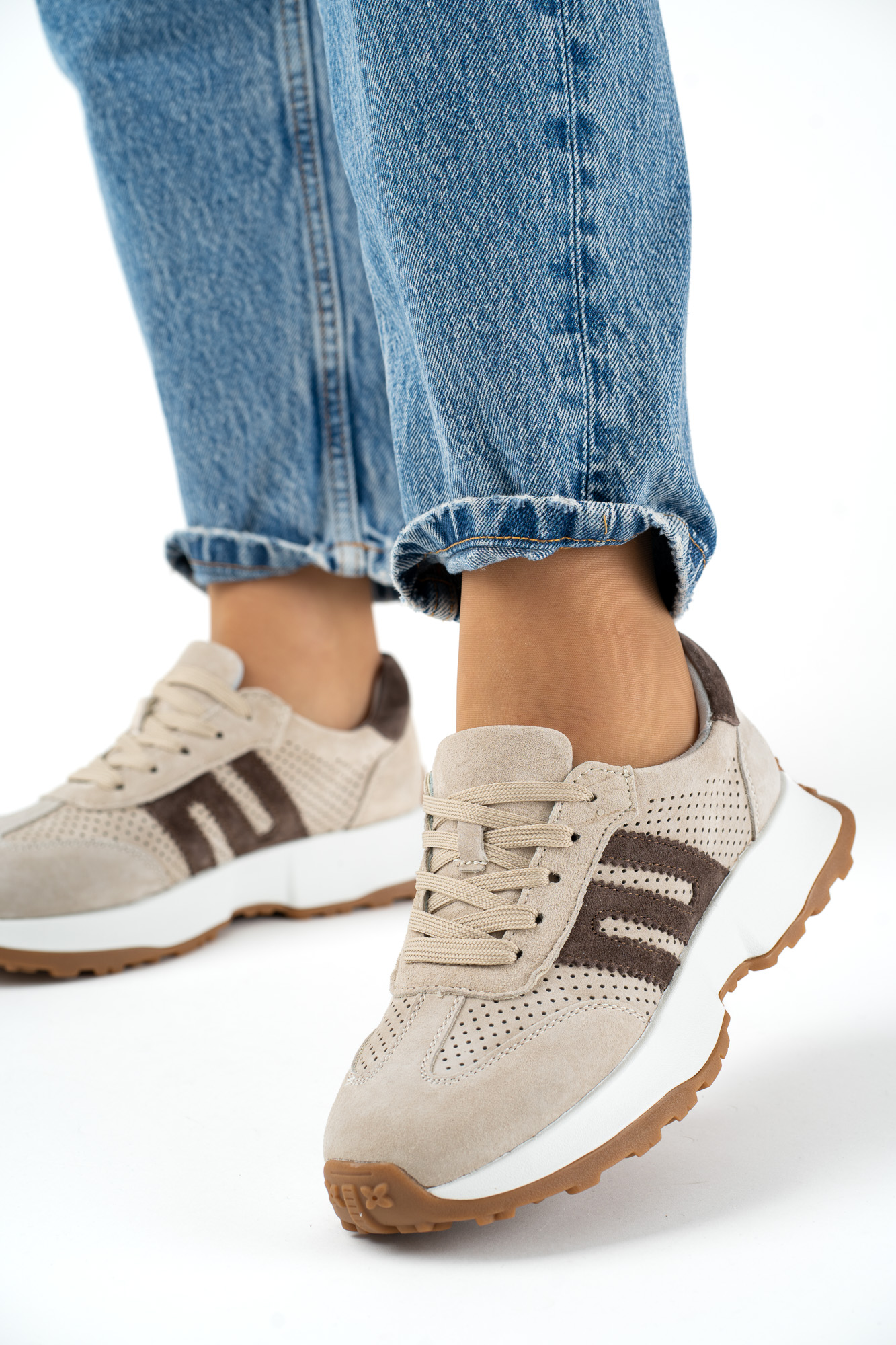 Stylowe beżowo-brązowe sneakersy damskie wykonane z wysokiej jakości skóry naturalnej to idealne połączenie wygody, trwałości i modnego wyglądu.
