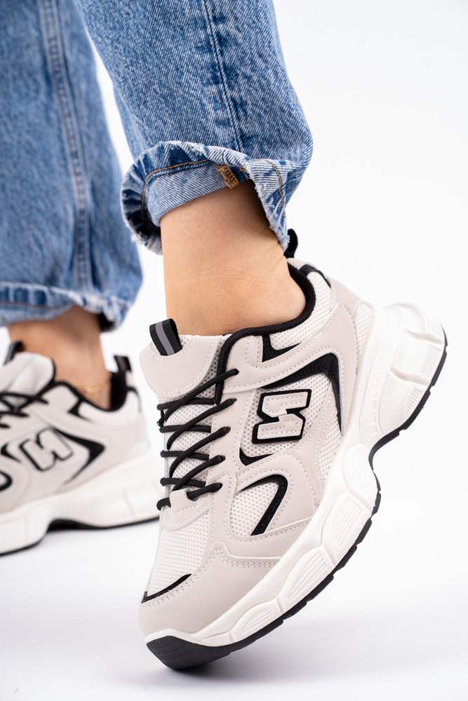 Sklep Beżowo czarne sneakersy buty sportowe damskie new Style