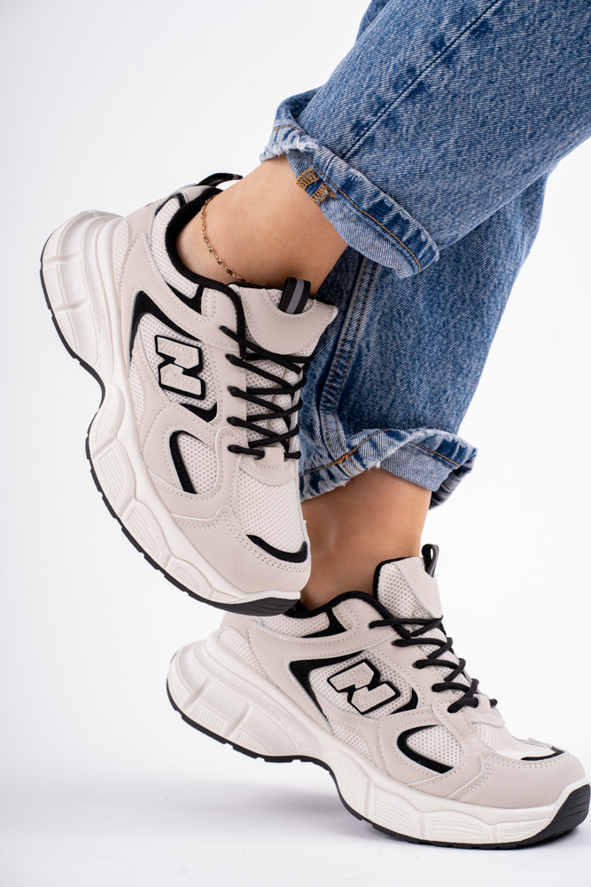 Beżowo czarne sneakersy buty sportowe damskie new Style