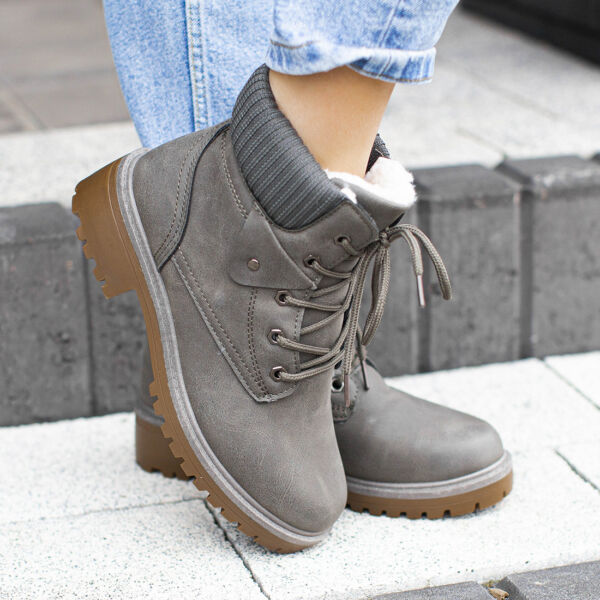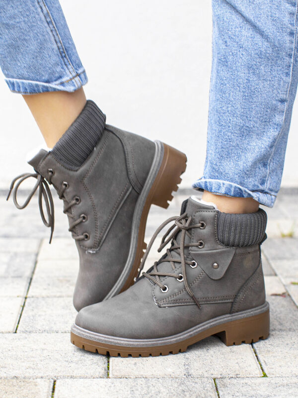 Ciemno Szare Botki Damskie Timberki Trapery Zimowe