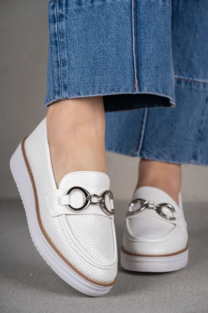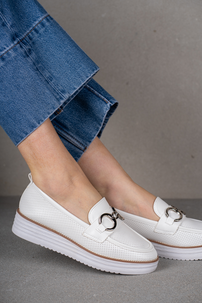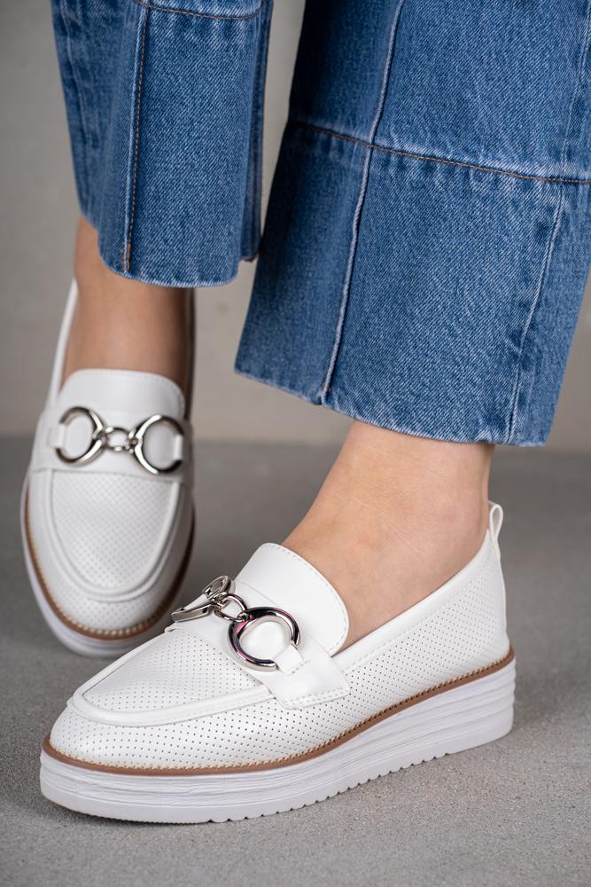 Białe mokasyny damskie na platformie z klamerką