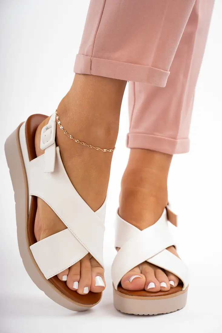 Białe sandały damskie na niskiej koturnie Marqizz