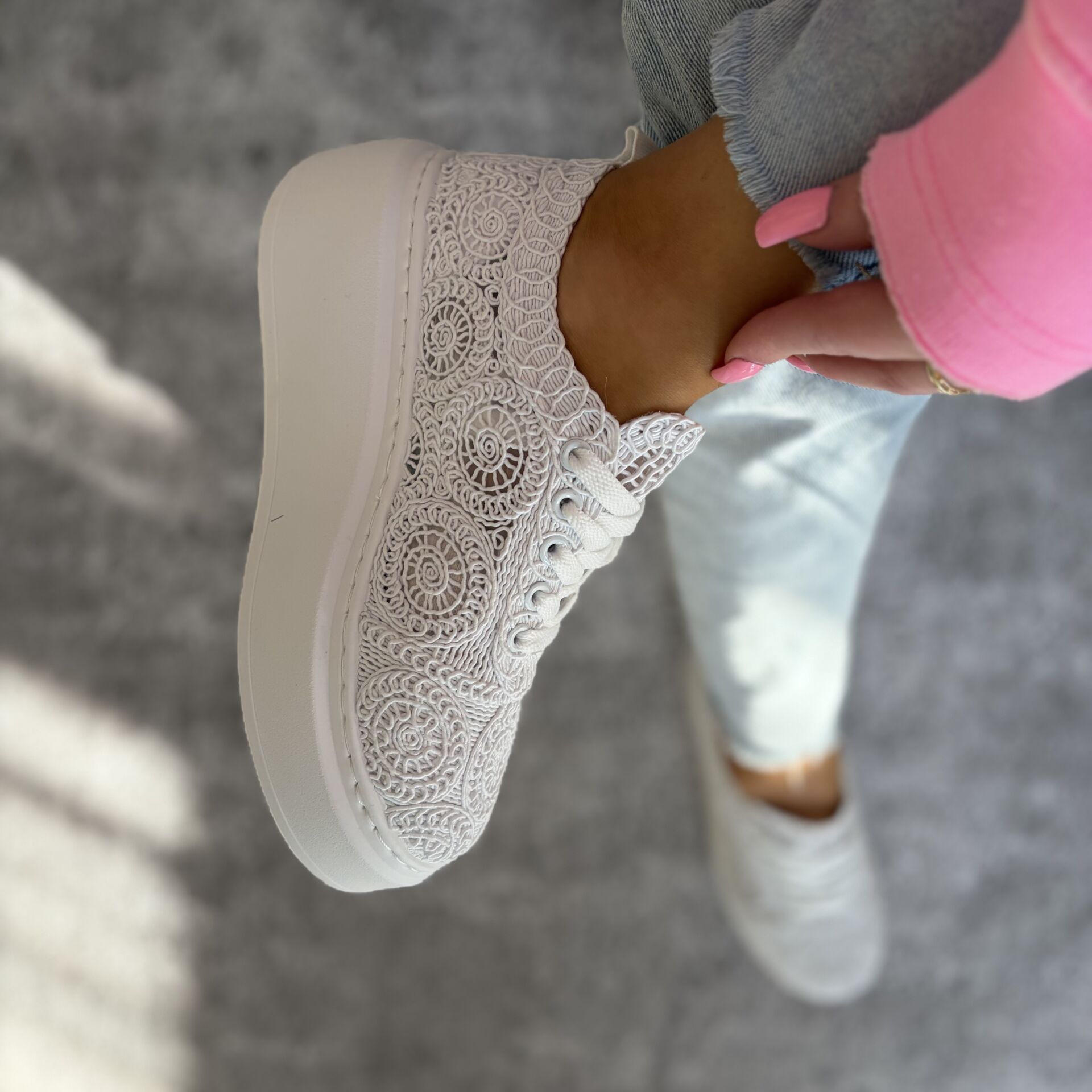 Sklep Białe sneakersy damskie na platformie z koronki lekkie trampki fashion