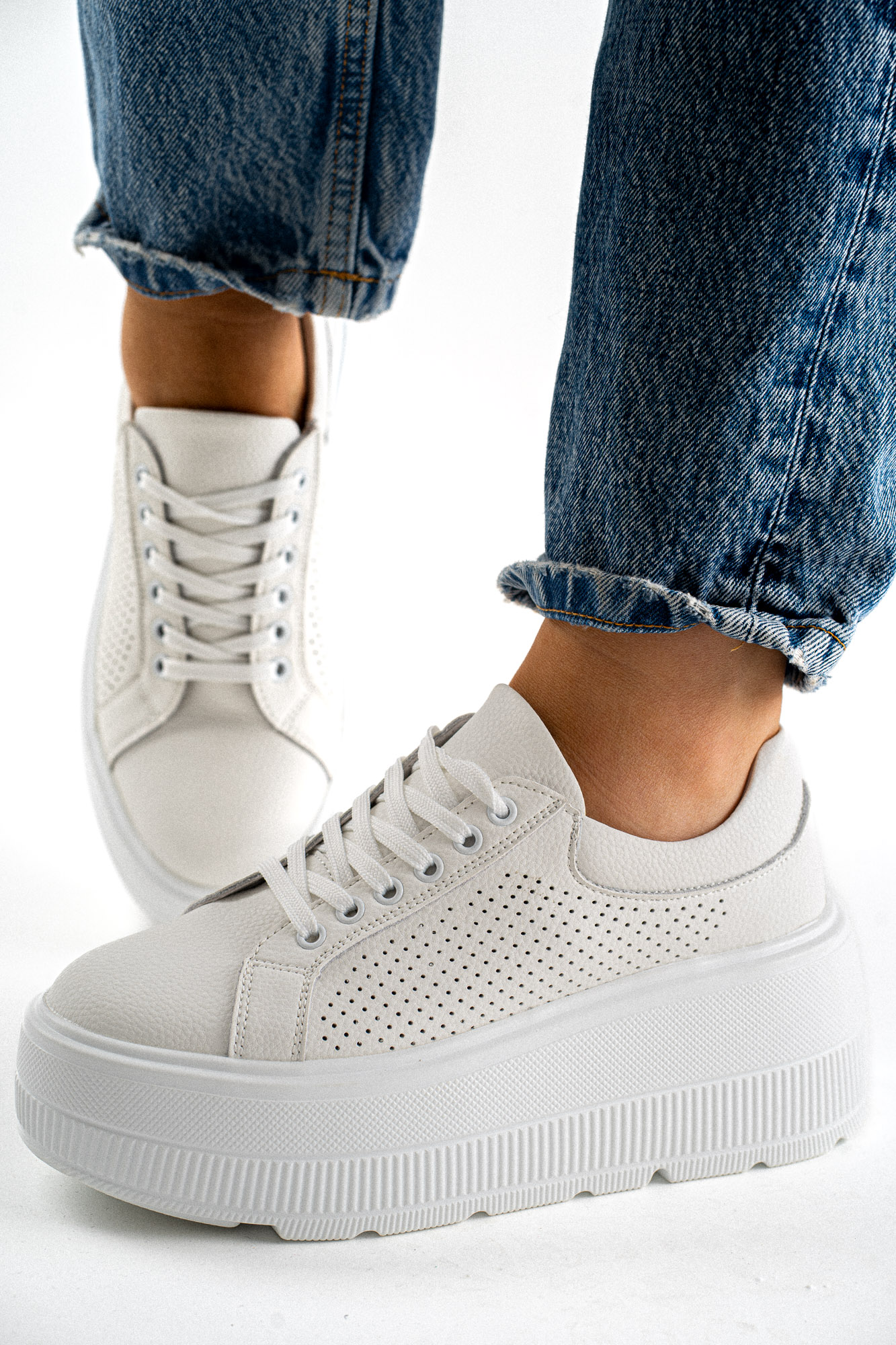 Białe sportowe buty na grubszym spodzie z modną cholewką