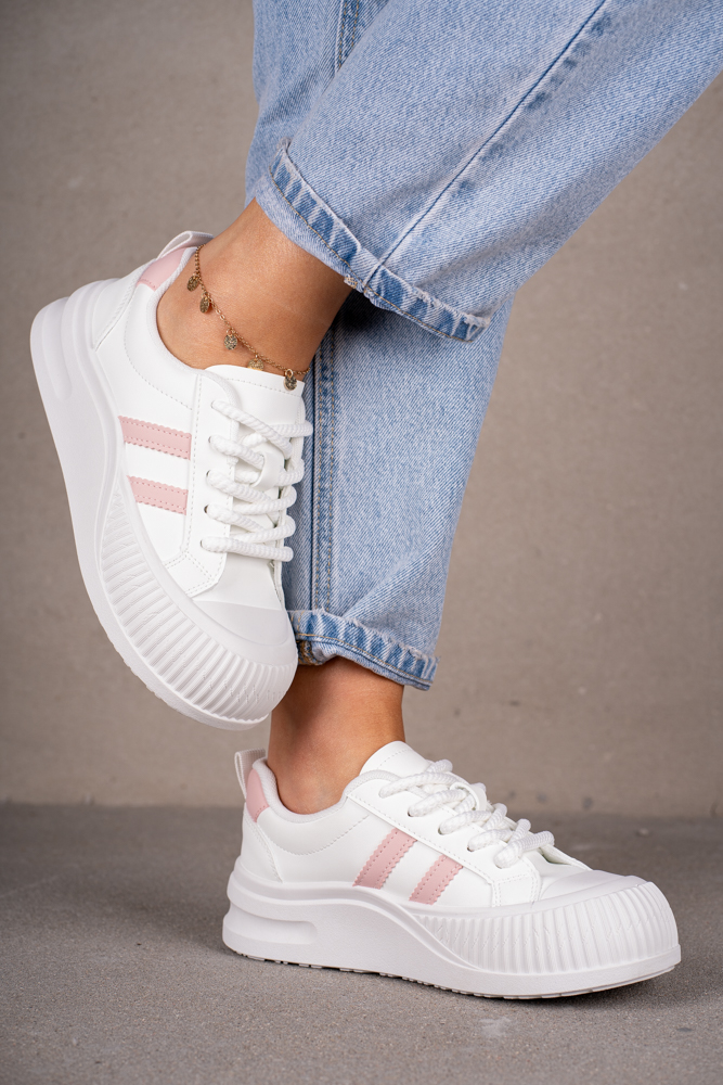 Biało różowe trampki damskie na grubym spodzie z gumowym noskiem