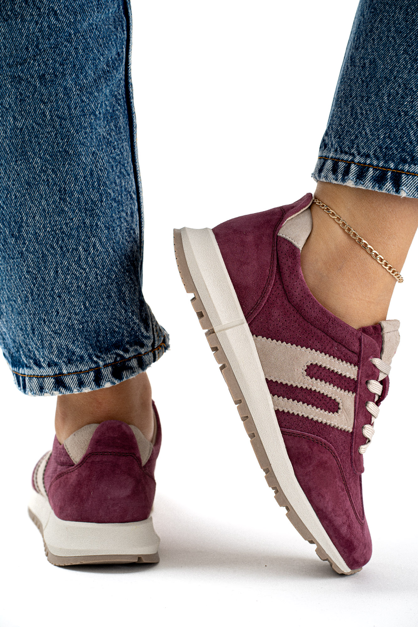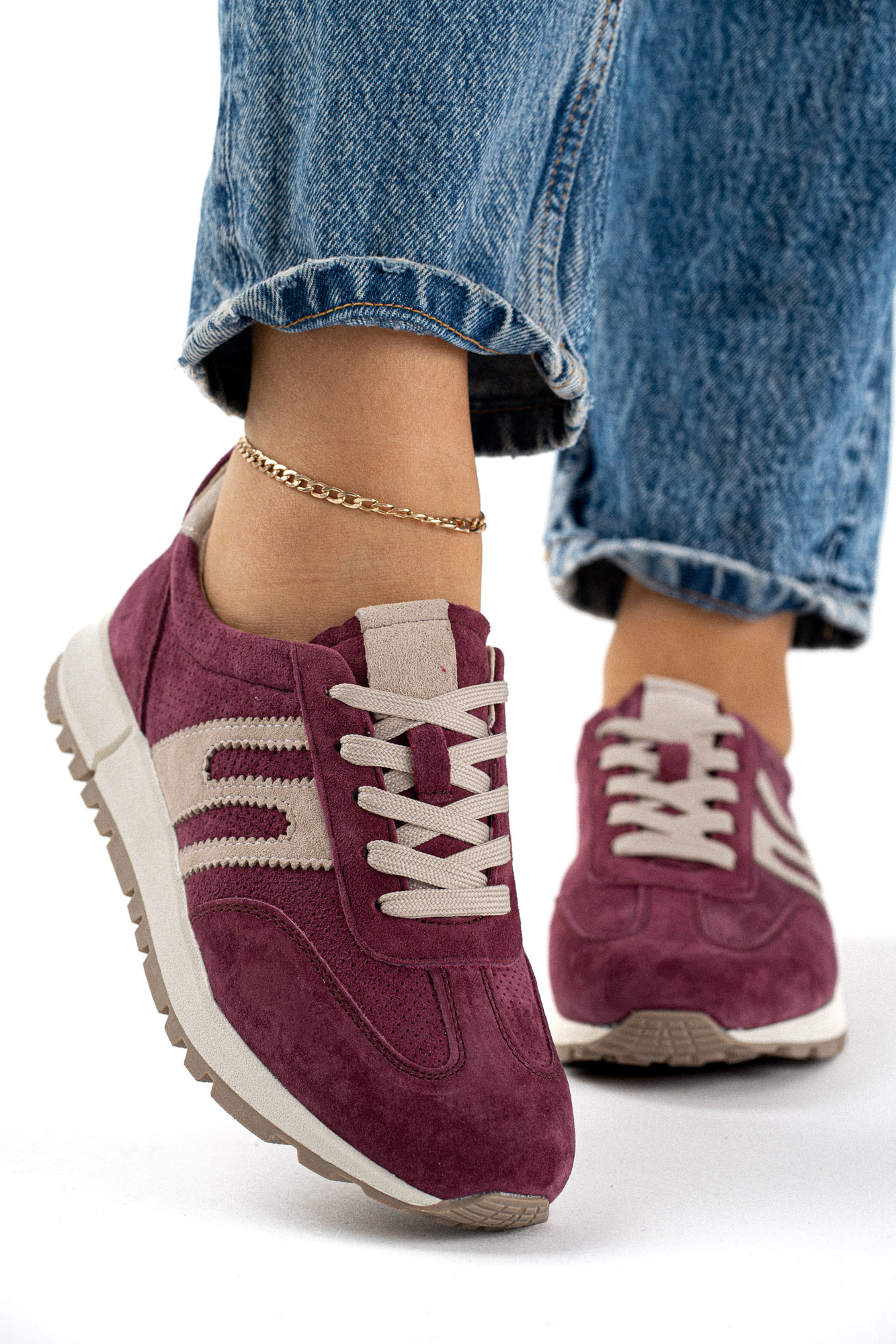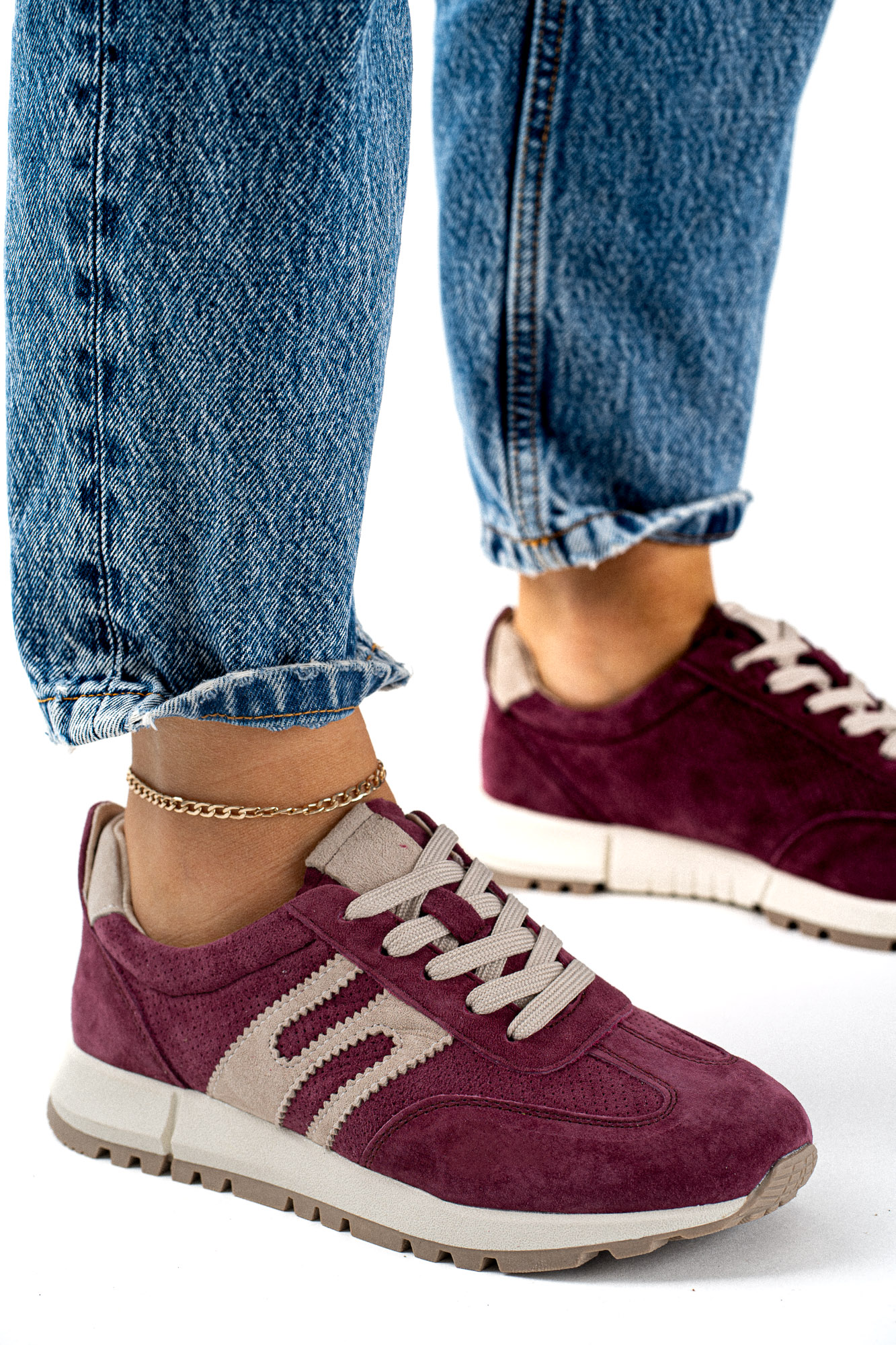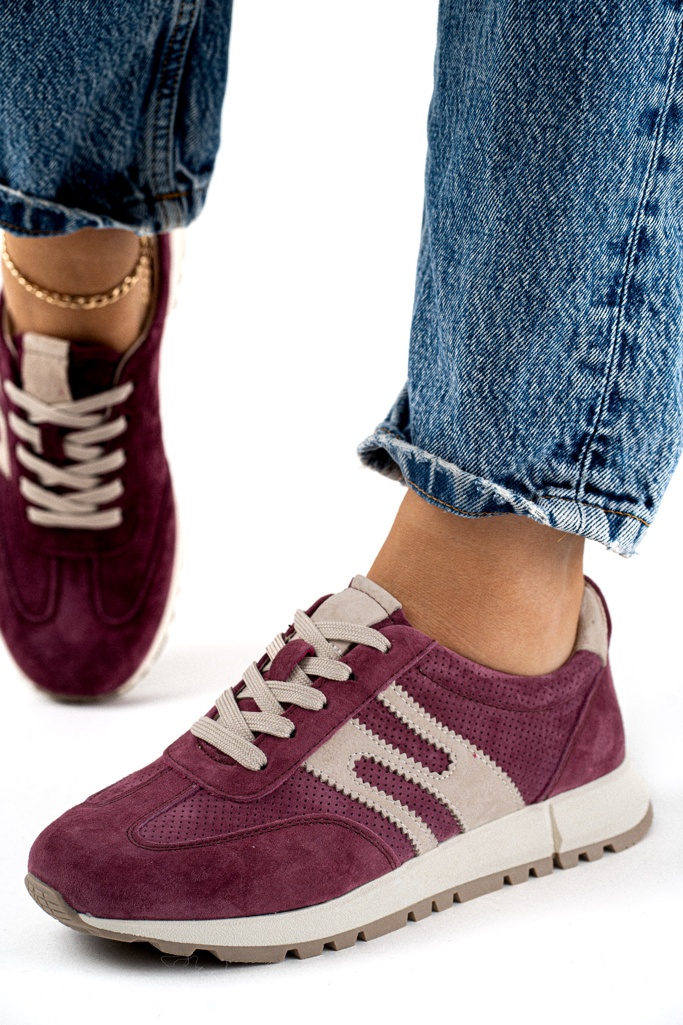 Stylowe bordowe sneakersy z naturalnej skóry.