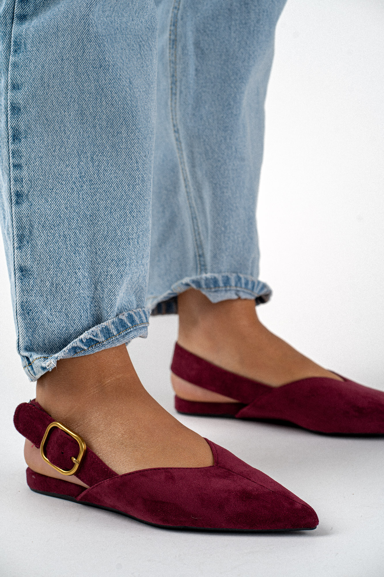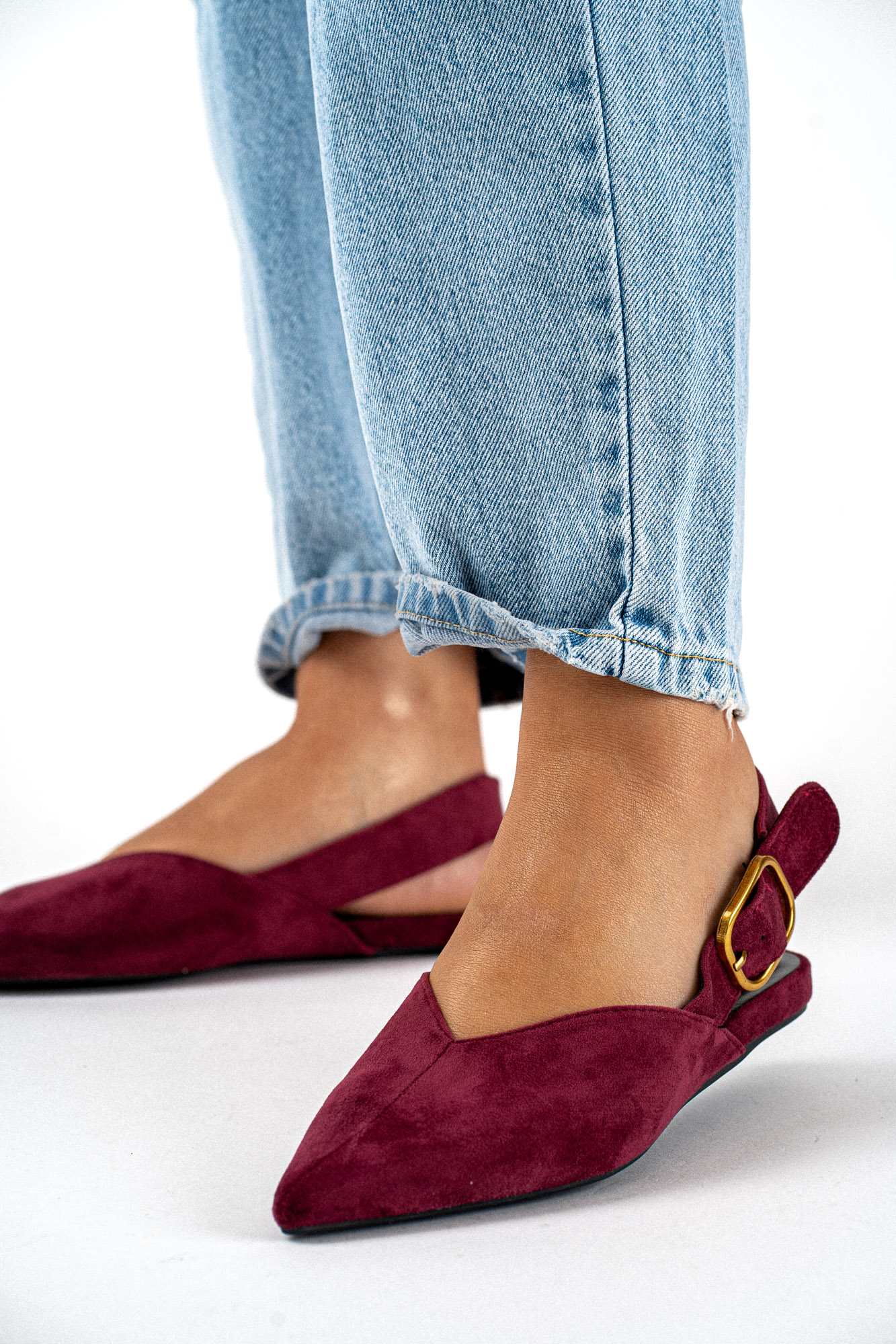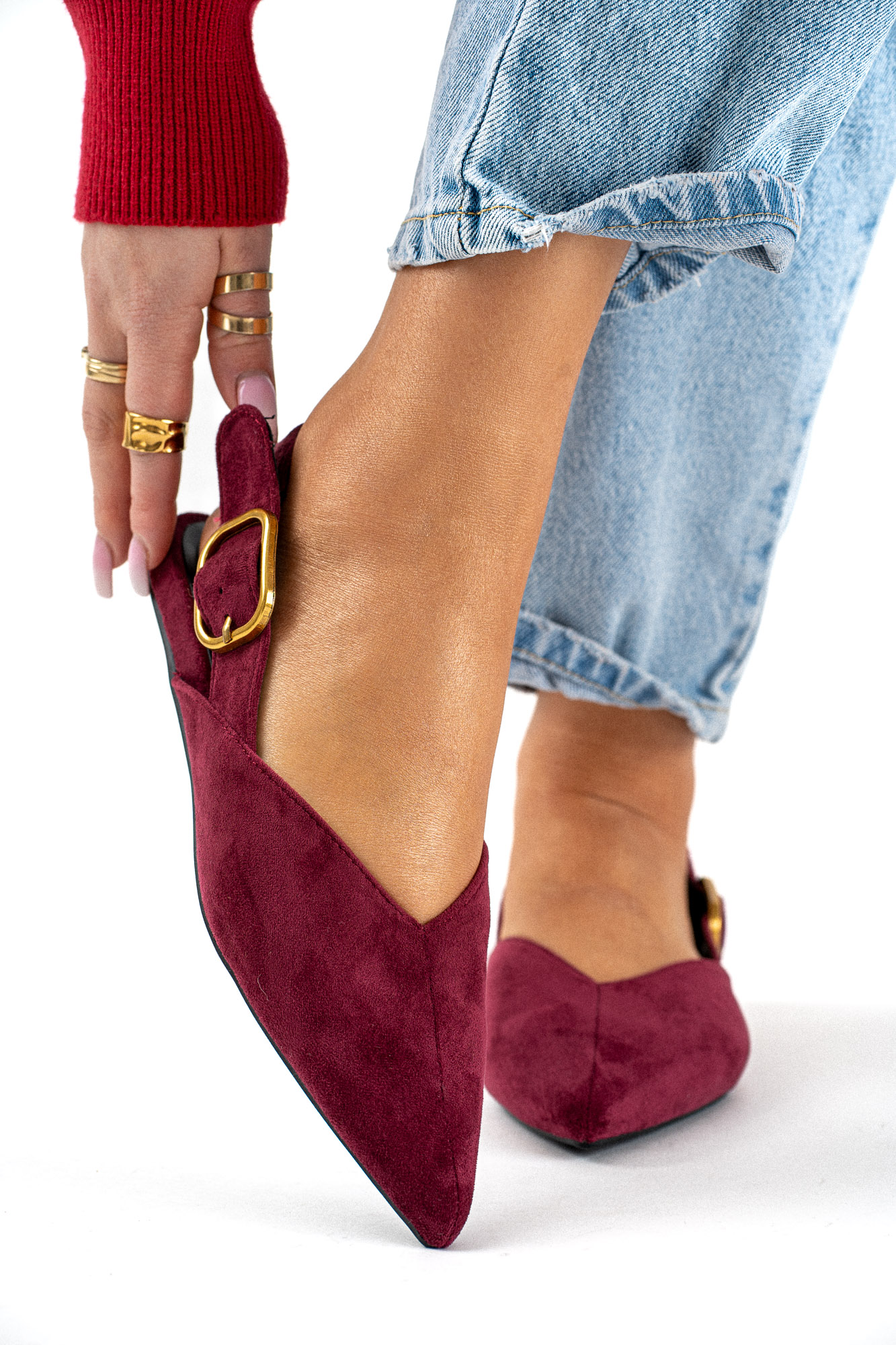 Sklep Bordowe zamszowe baleriny damskie z paskiem