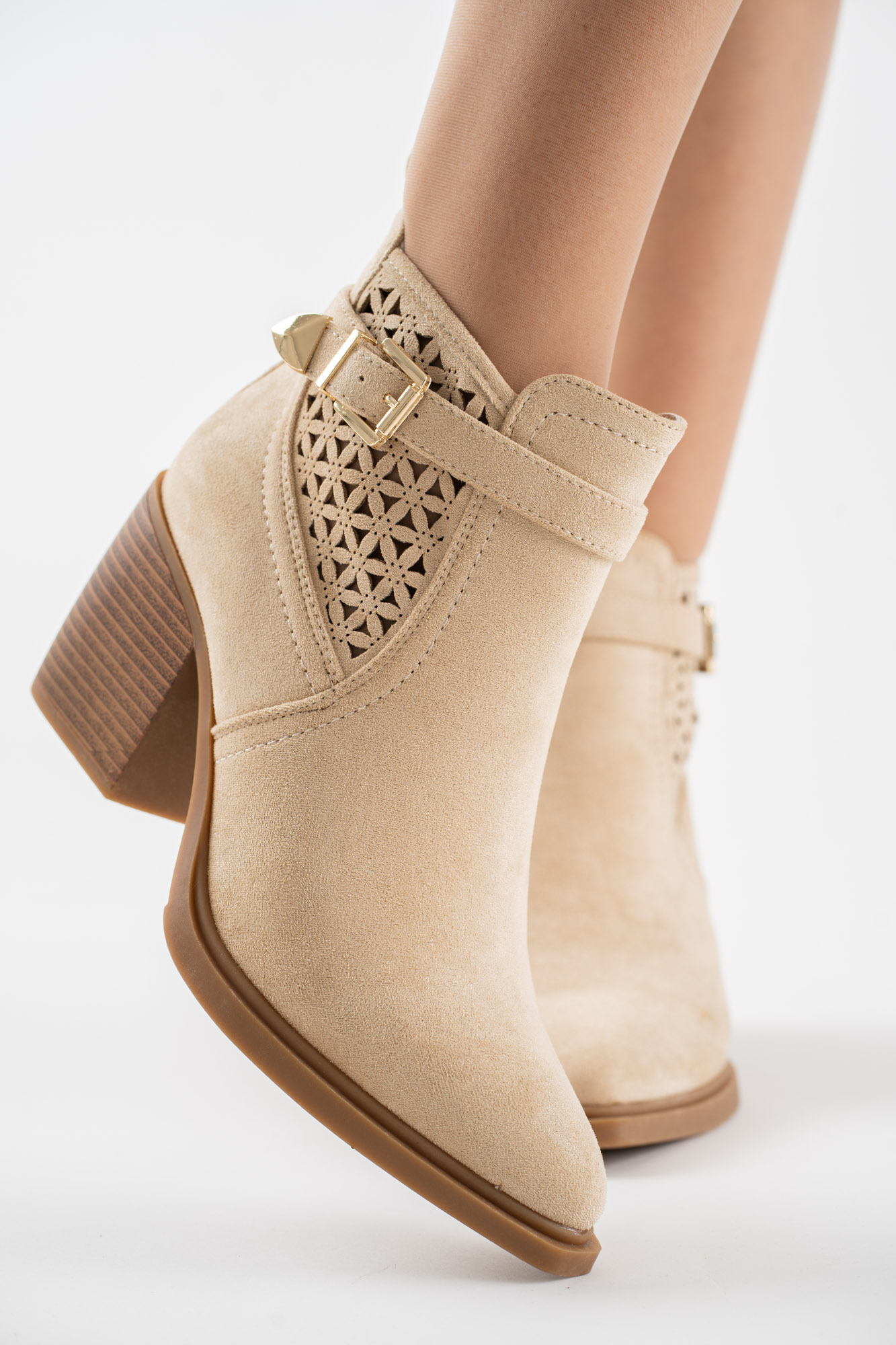Sklep Botki Damskie na obcasie Beżowe Ażurowe
