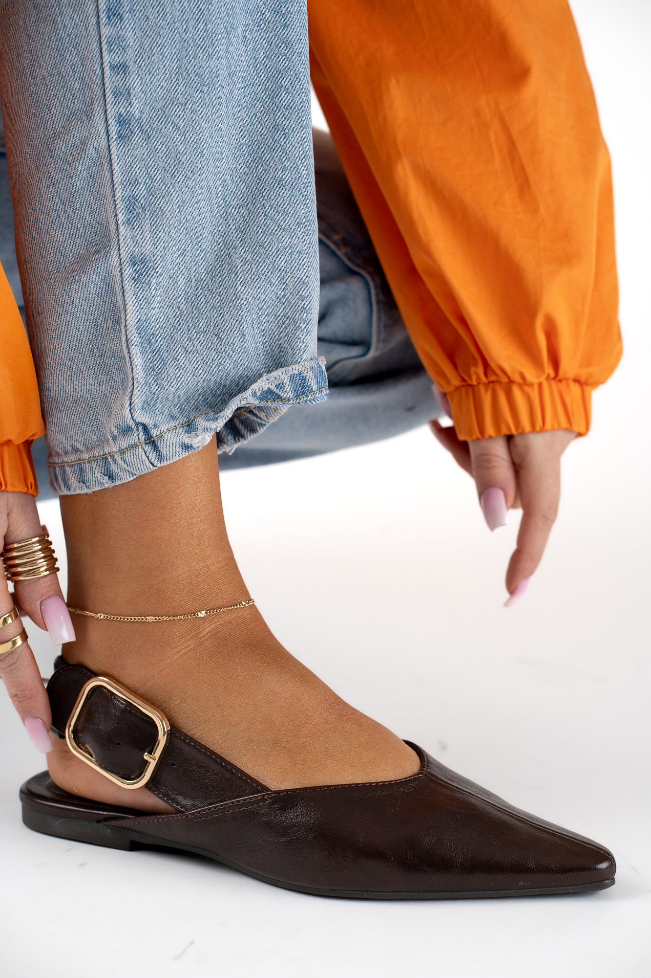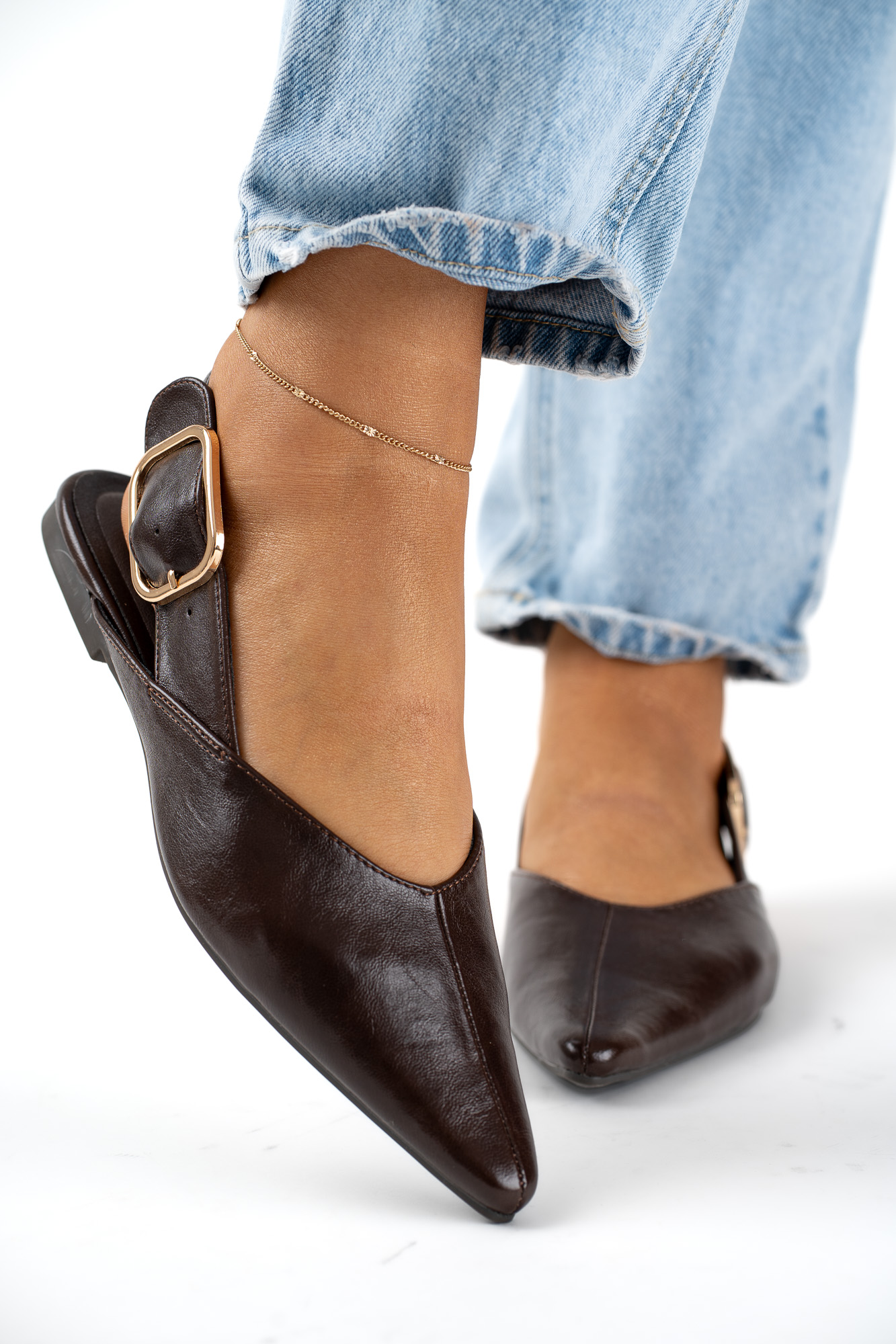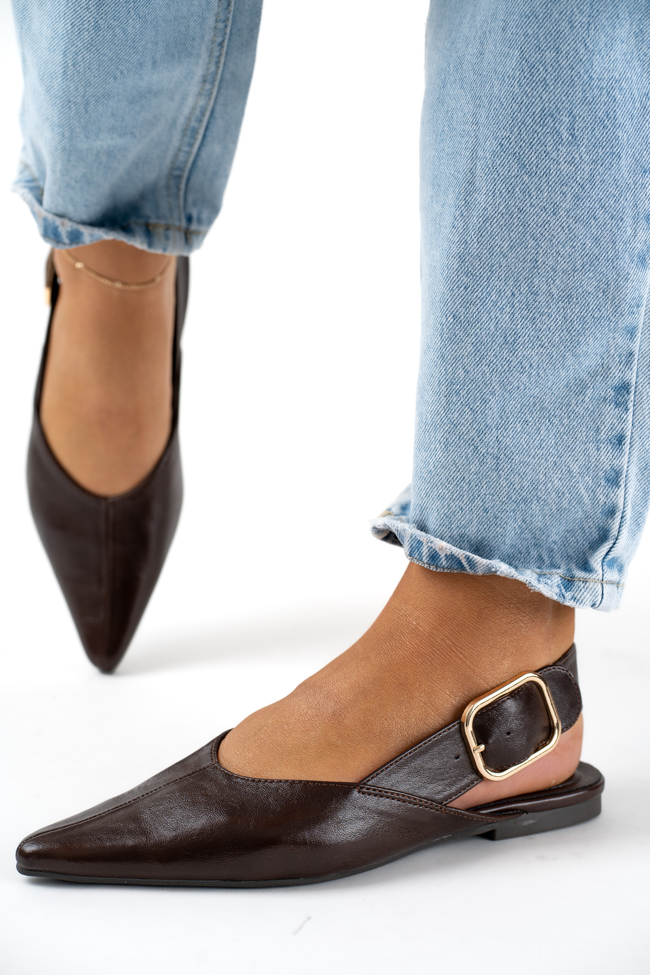 Stylowe Brązowe baleriny damskie z regulowanym paskiem, które łączą elegancję z komfortem noszenia.