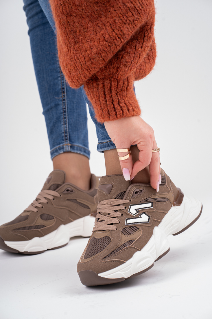 Ciemnobeżowe buty sportowe damskie Inel