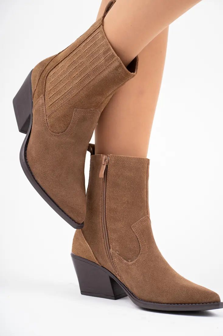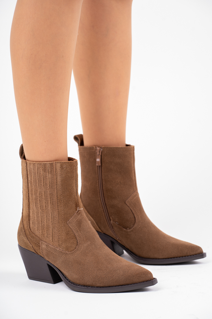 Brązowe kowbojki damskie na obcasie ze skóry naturalnej