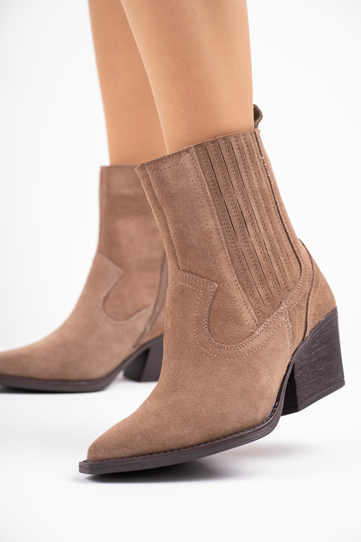 Beżowe botki kowbojki na obcasie skóra naturalna