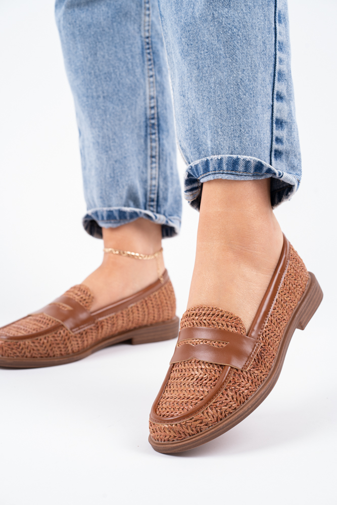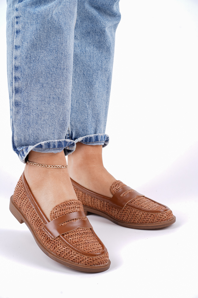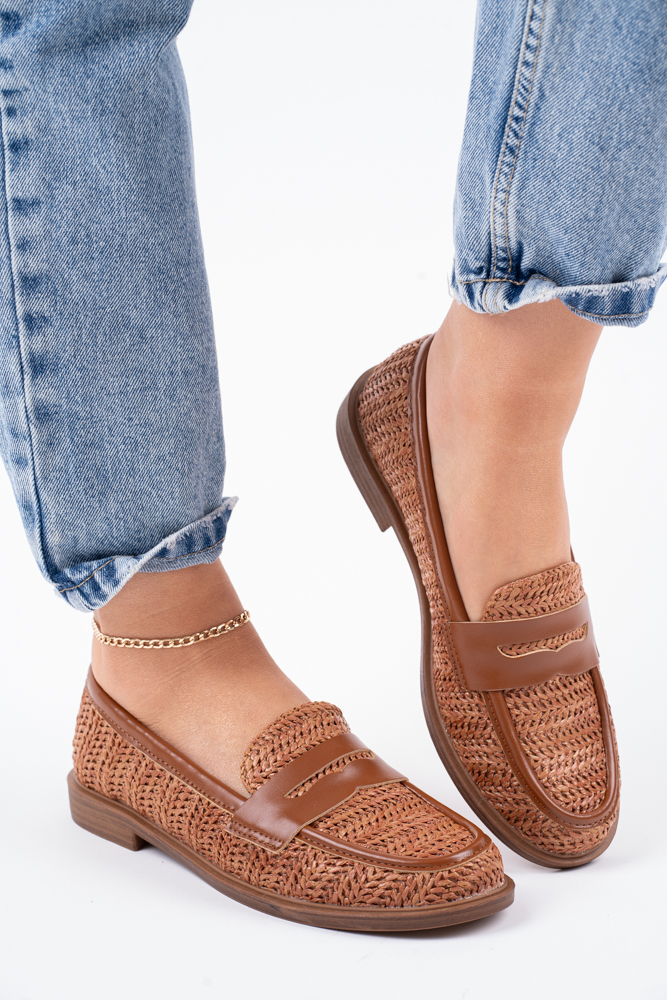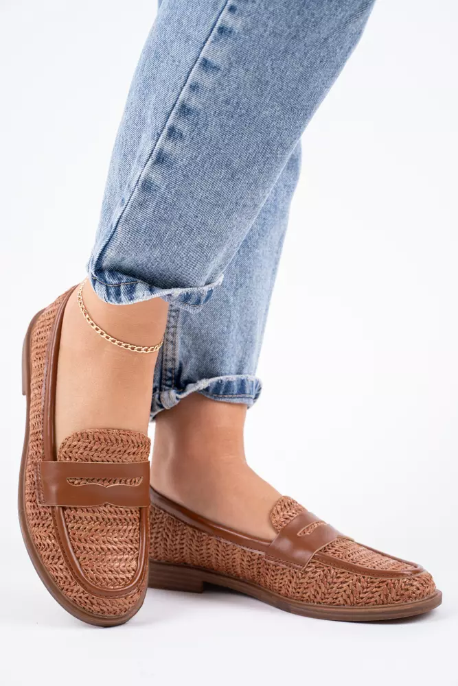 Sklep Brązowe plecione mokasyny na niskim obcasie