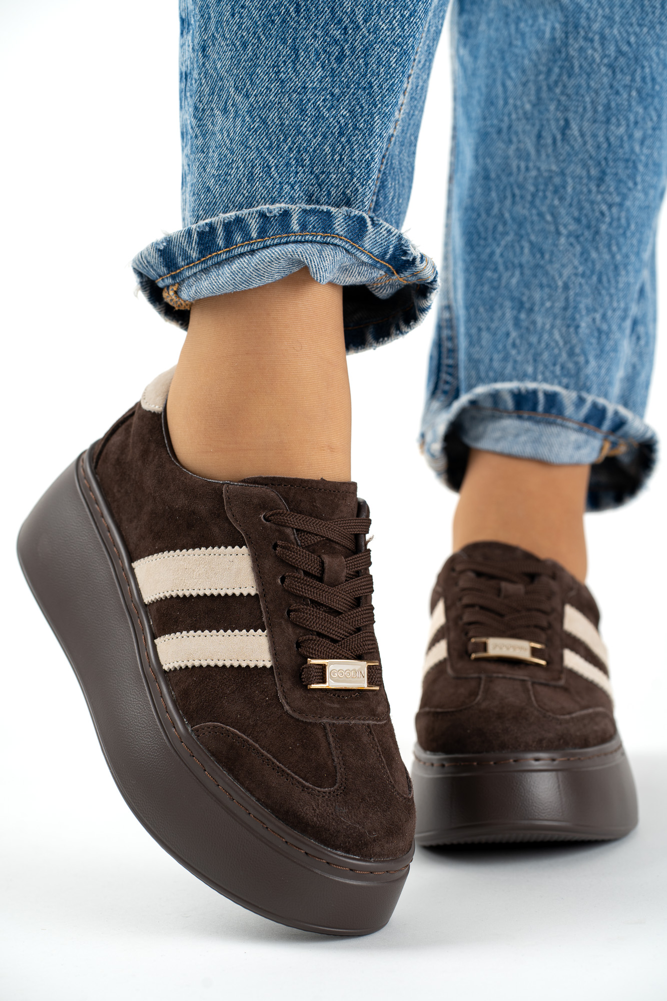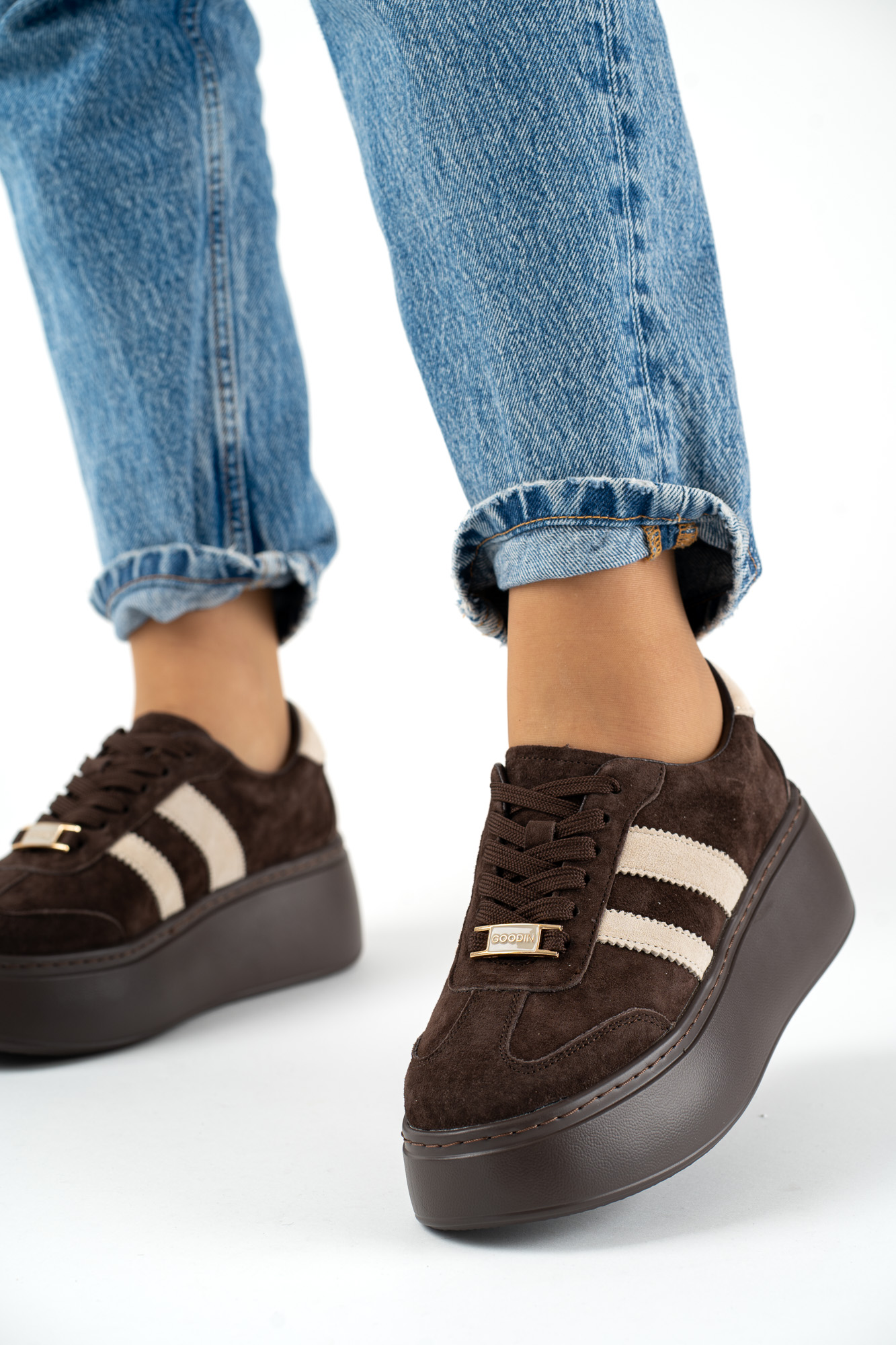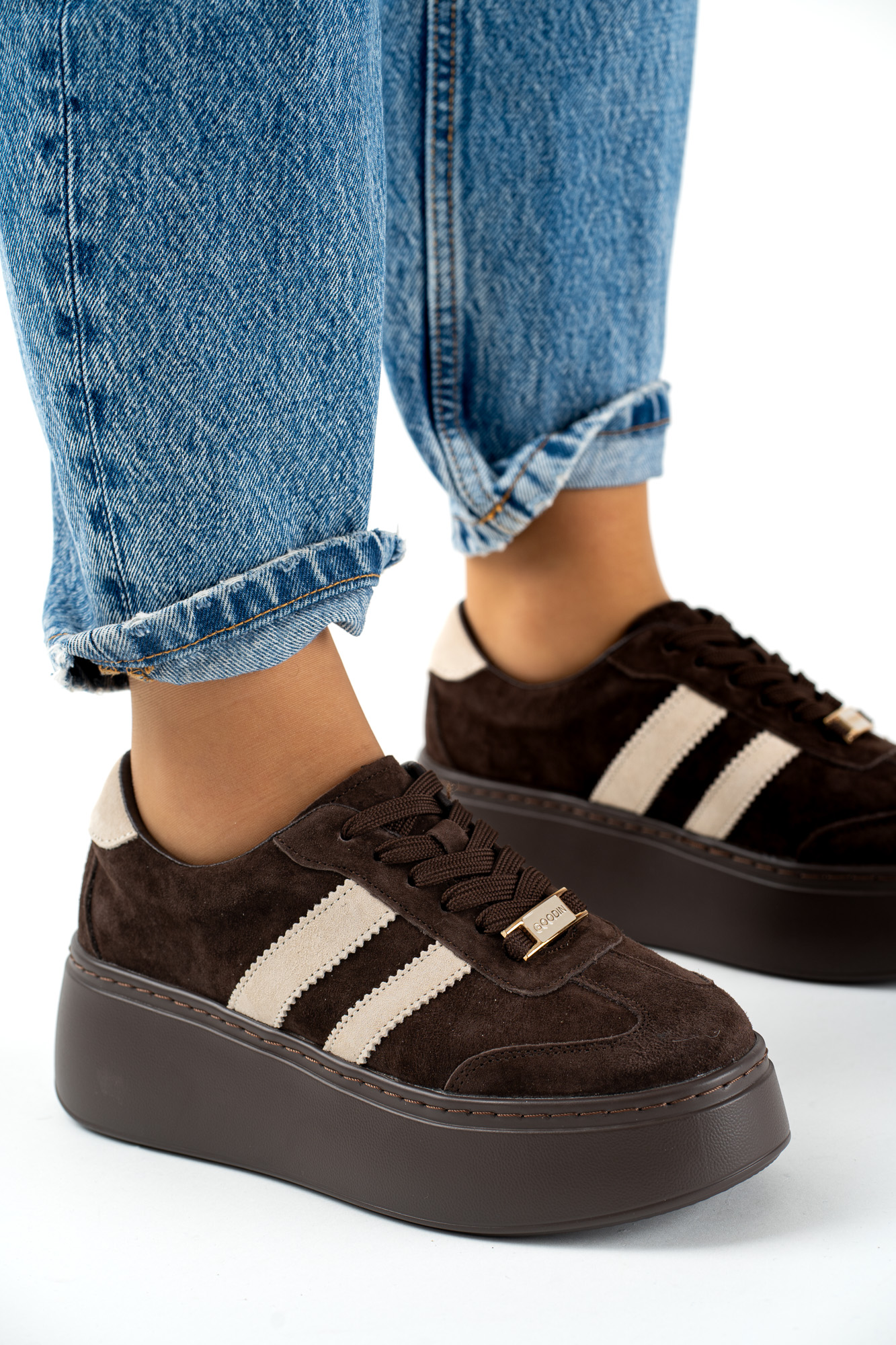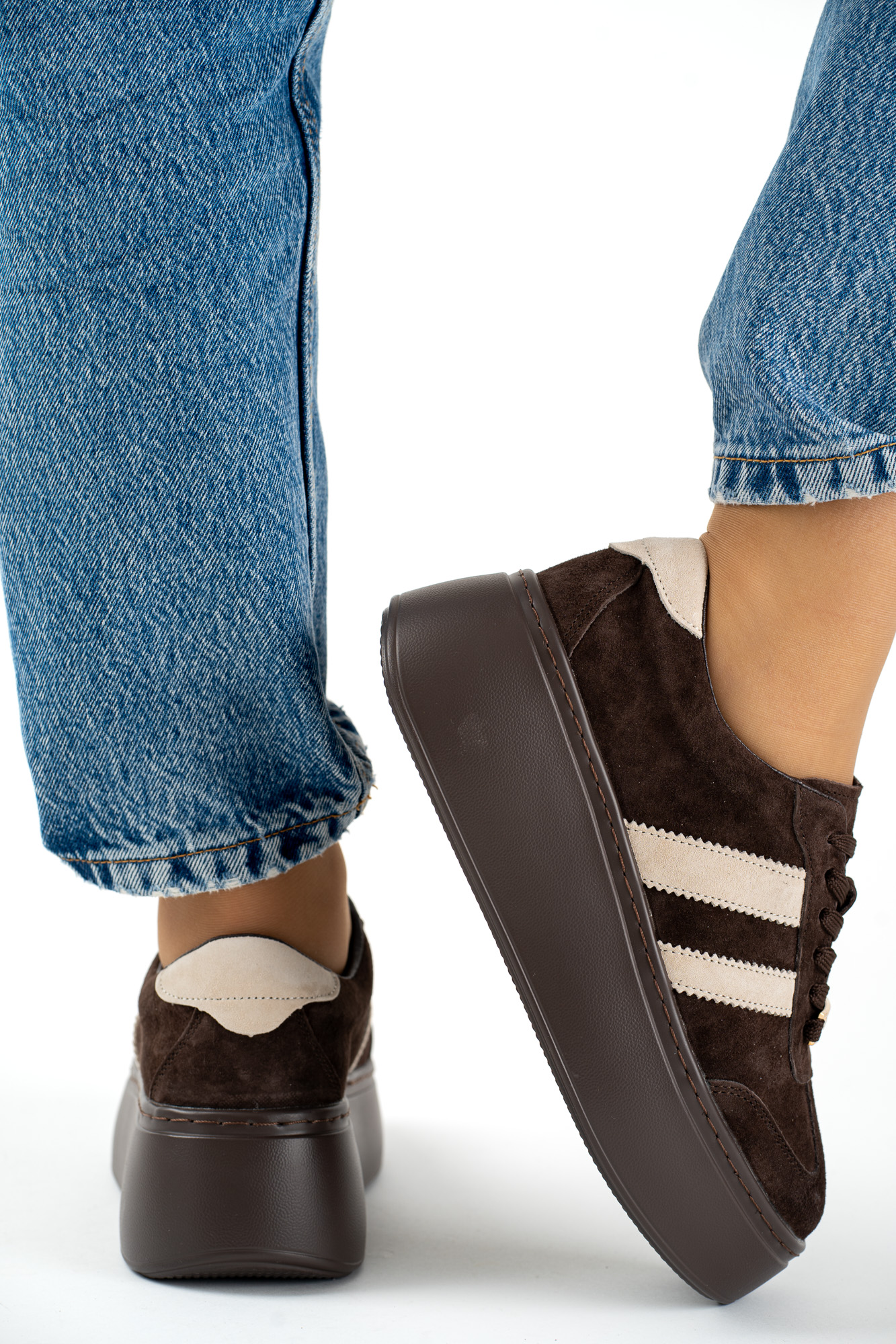 Ciemnobeżowe buty sportowe damskie Inel