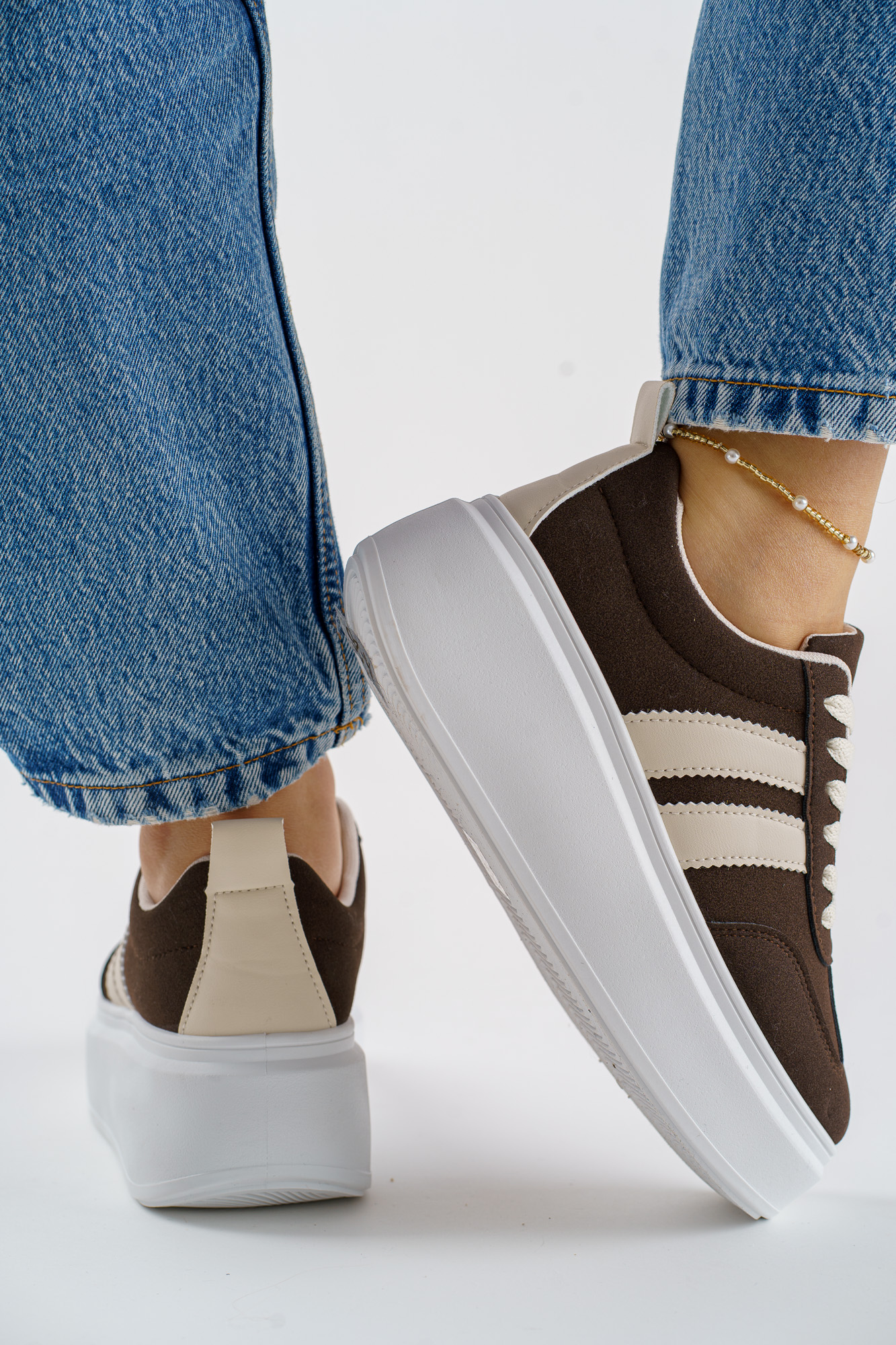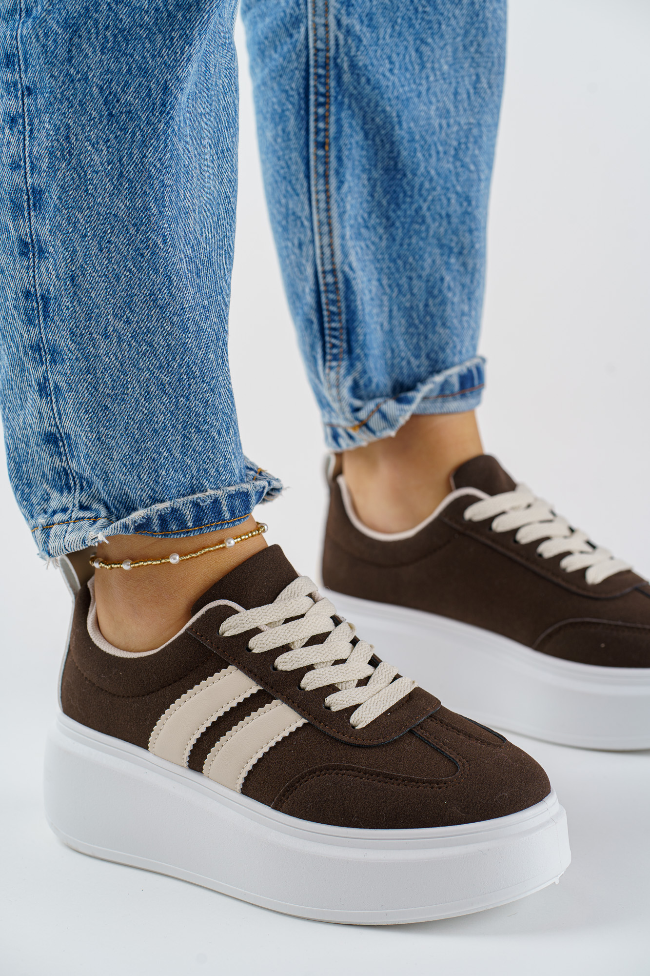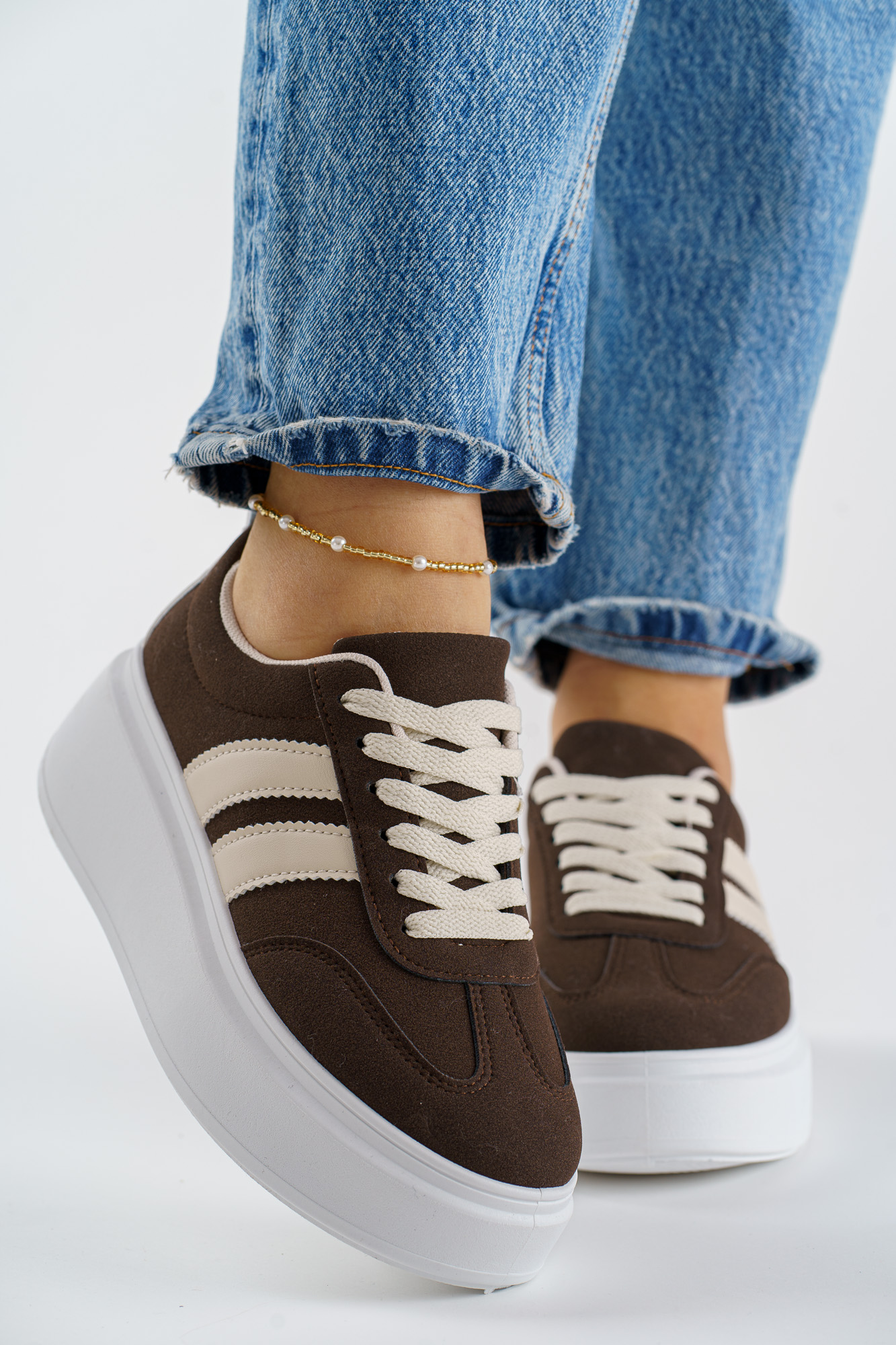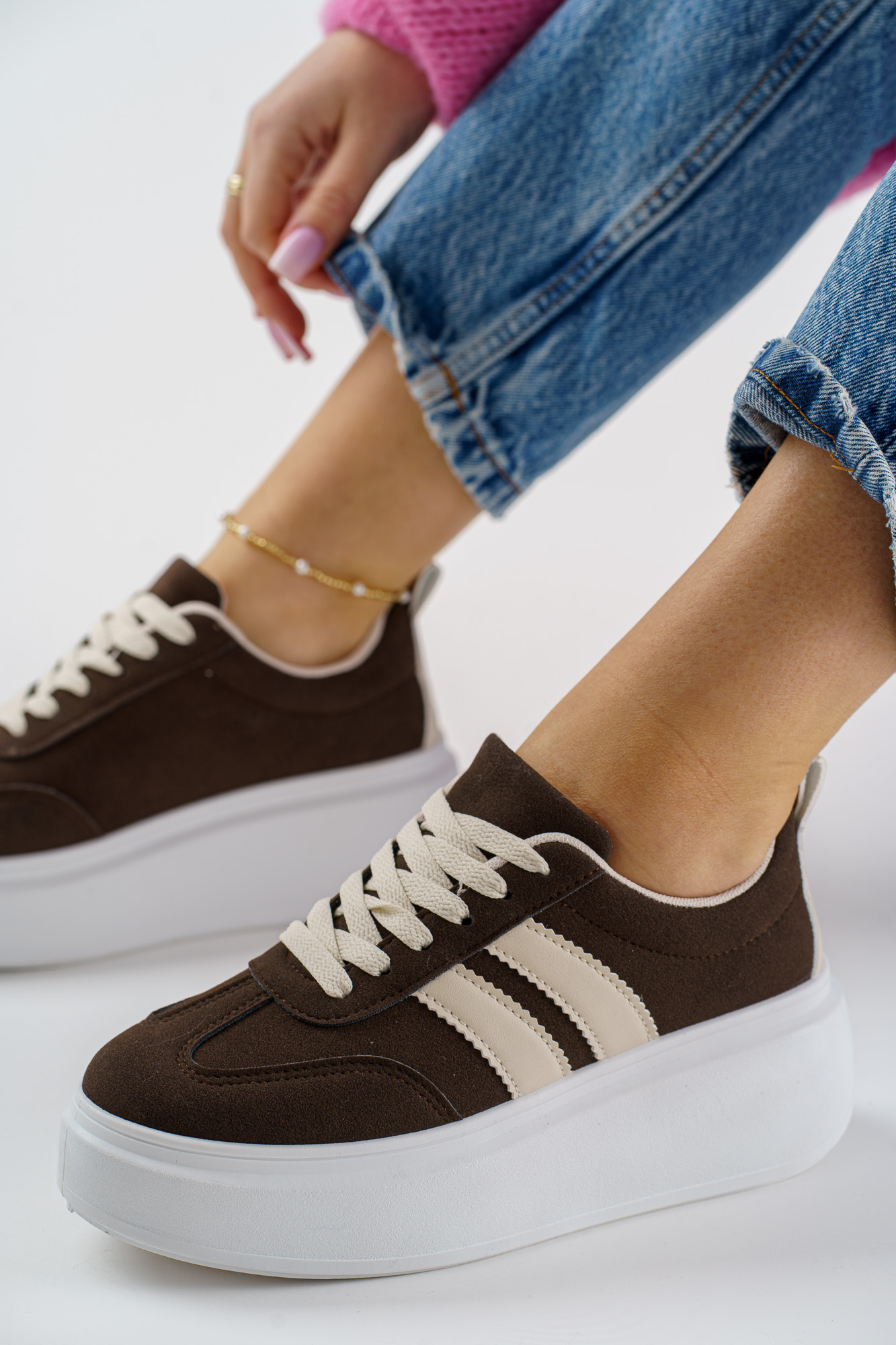 Stylowe Brązowe sneakersy damskie wykonane z miękkiego zamszu.