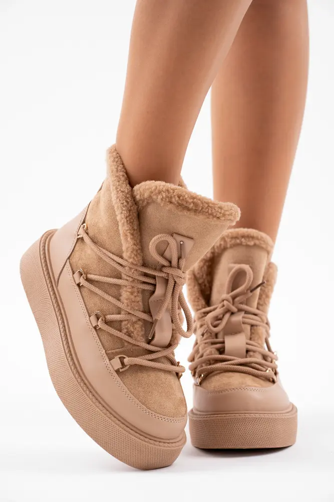 Beżowe Śniegowce Botki damskie ocieplane Dover