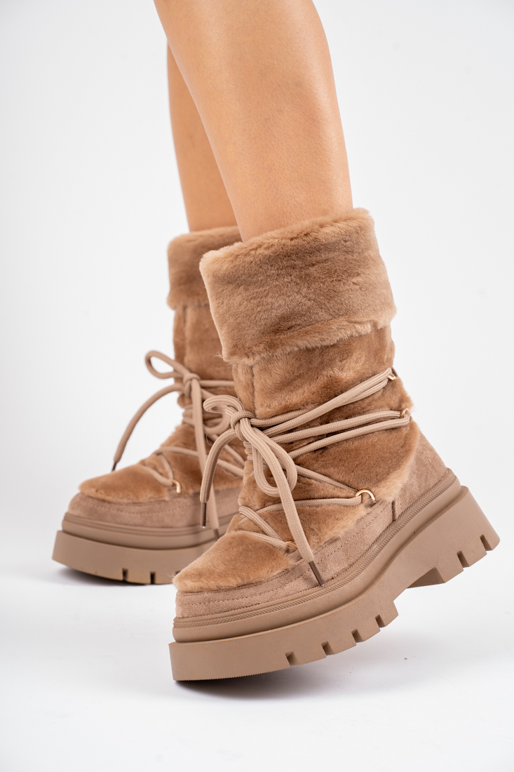 Beżowe śniegowce damskie grubo ocieplane na platformie