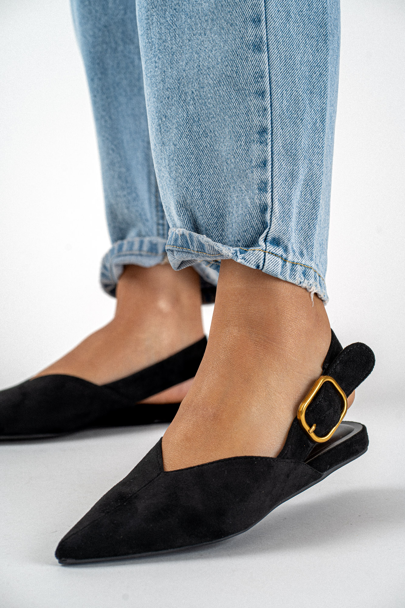Eleganckie czarne baleriny wykonane z miękkiego zamszu.