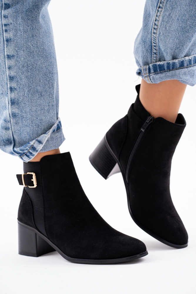 Sklep Czarne botki damskie na niskim obcasie Alex