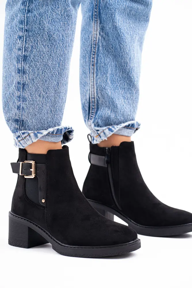 Sklep Czarne botki damskie zamszowe na niskim obcasie