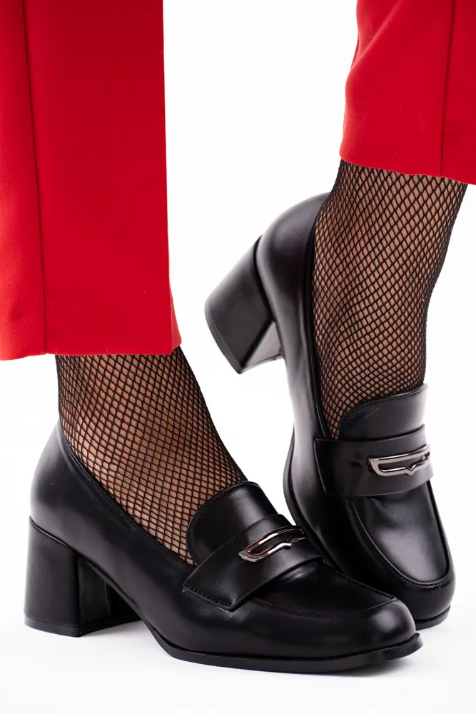 Czarne czółenka mokasyny damskie na niskim obcasie