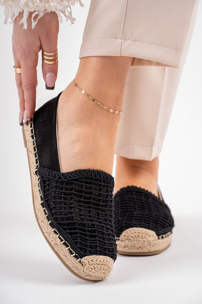 Czarne ażurowe espadryle damskie na lato