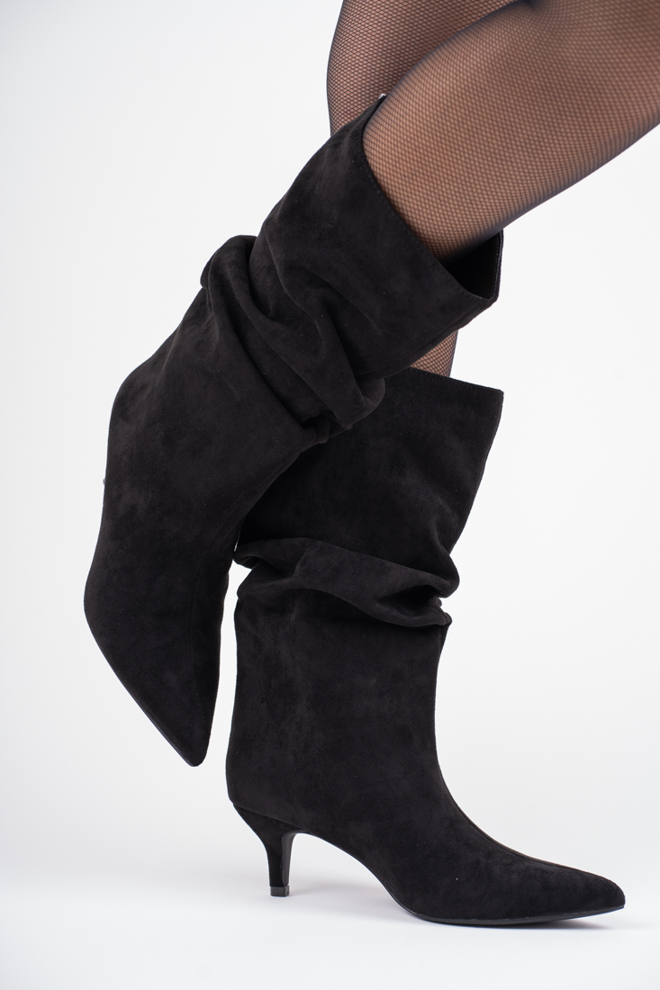 Długie zamszowe kozaki na płaskim grubym spodzie Tives