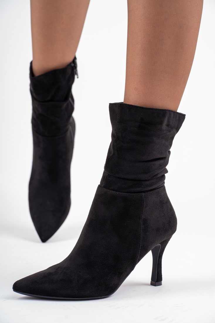 Sklep Czarne krótkie botki damskie na niskiej szpilce z dłuższą cholewką zamszowe