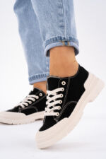 Sklep Czarne krótkie trampki damskie z gumowym noskiem