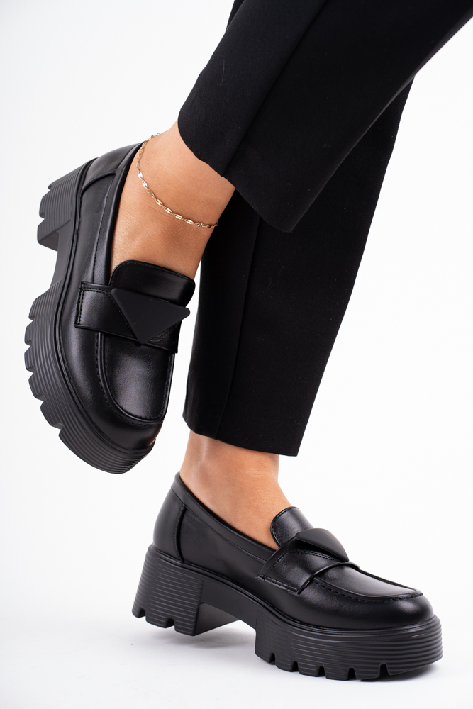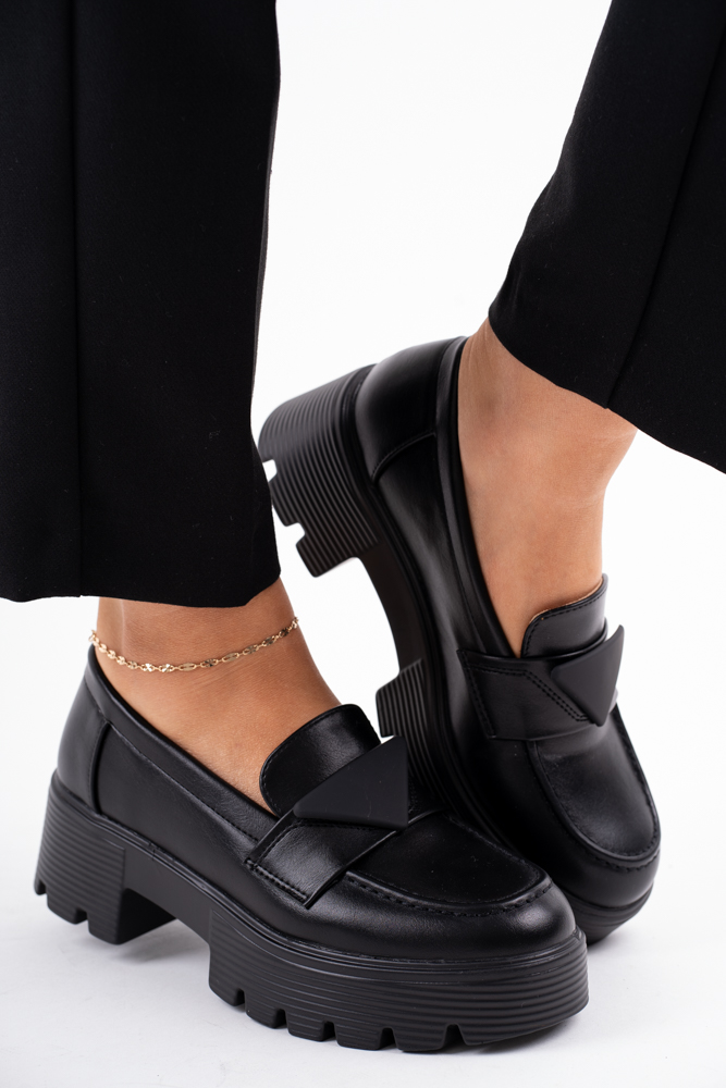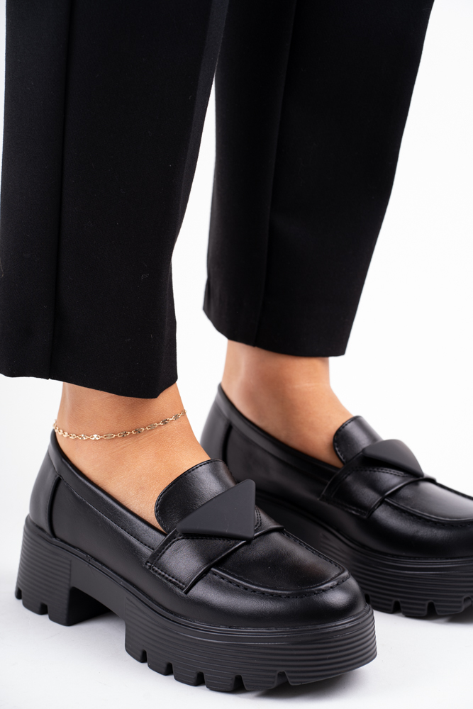 Sklep Czarne mokasyny damskie na grubej podeszwie
