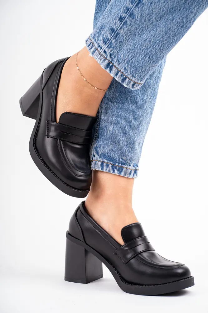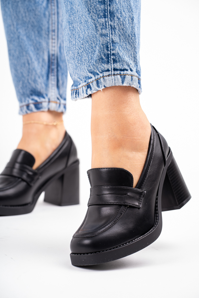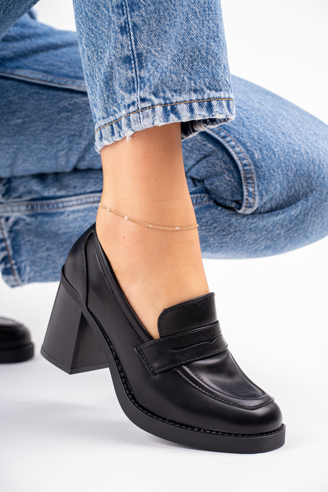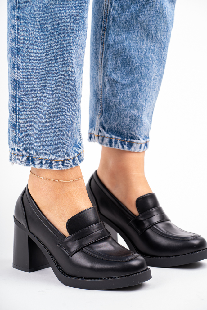 Sklep Czarne Mokasyny damskie na obcasie gładkie