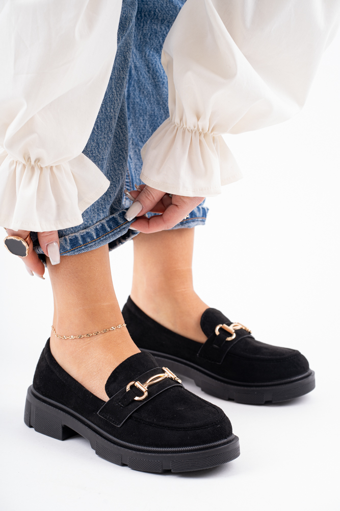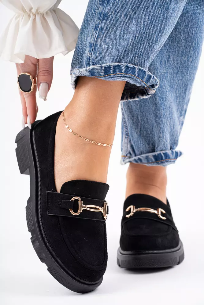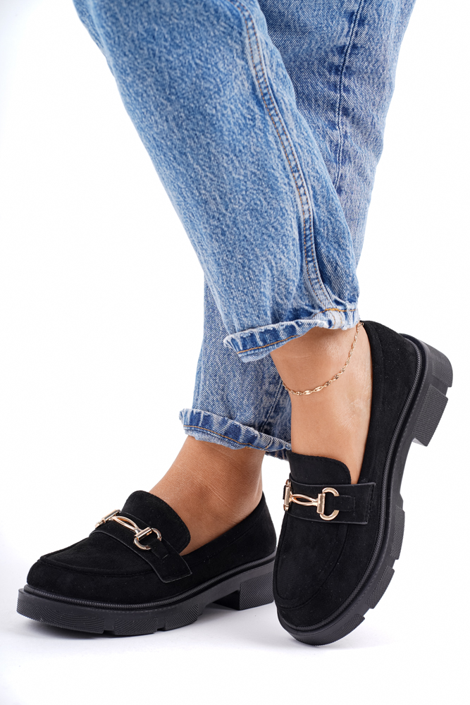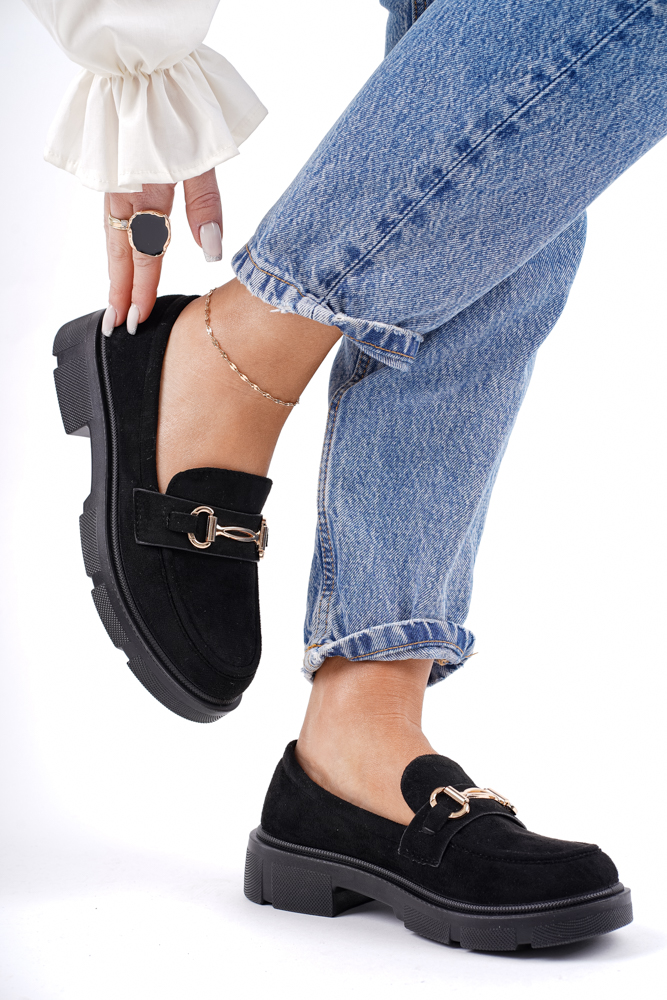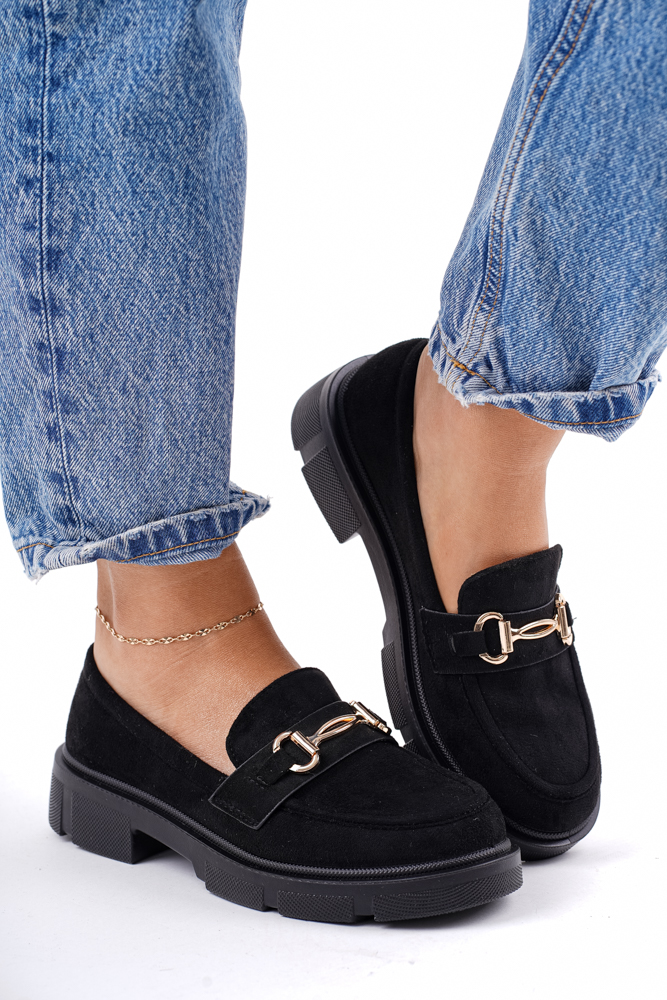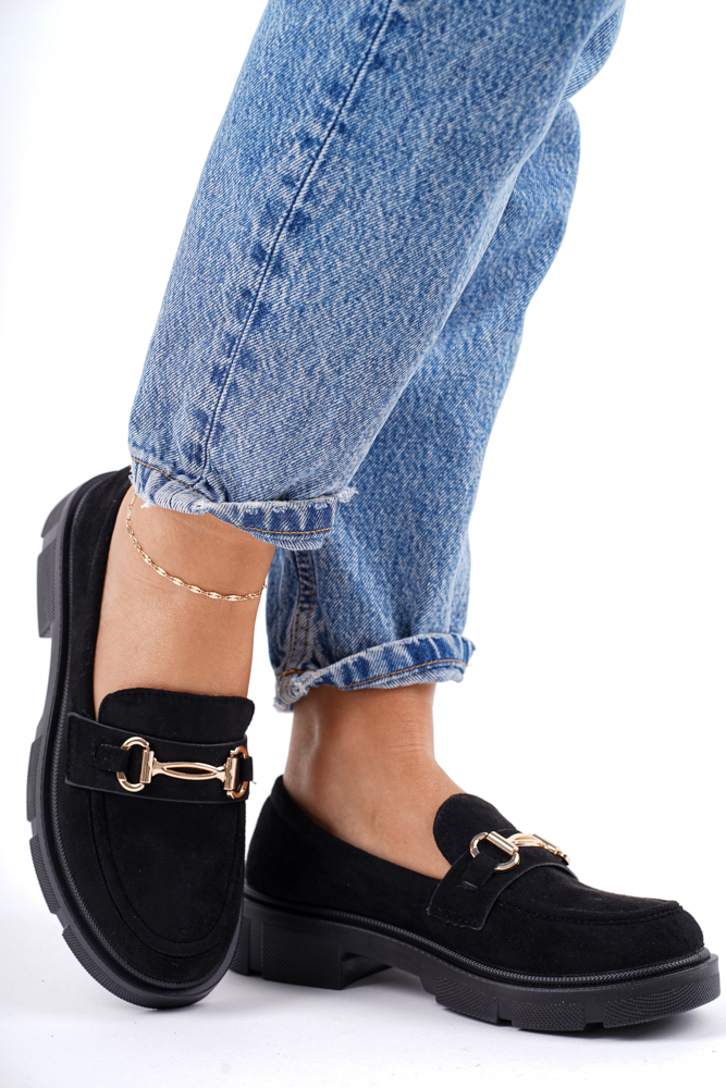 Zamszowe mokasyny półbuty damskie czarne Megan