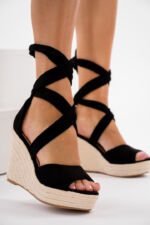 Sklep Czarne sandały damskie na koturnie wiązane Suunny