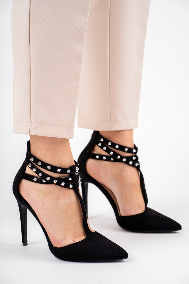 Sklep Czarne sandały damskie na szpilce zapinane wokół kostki