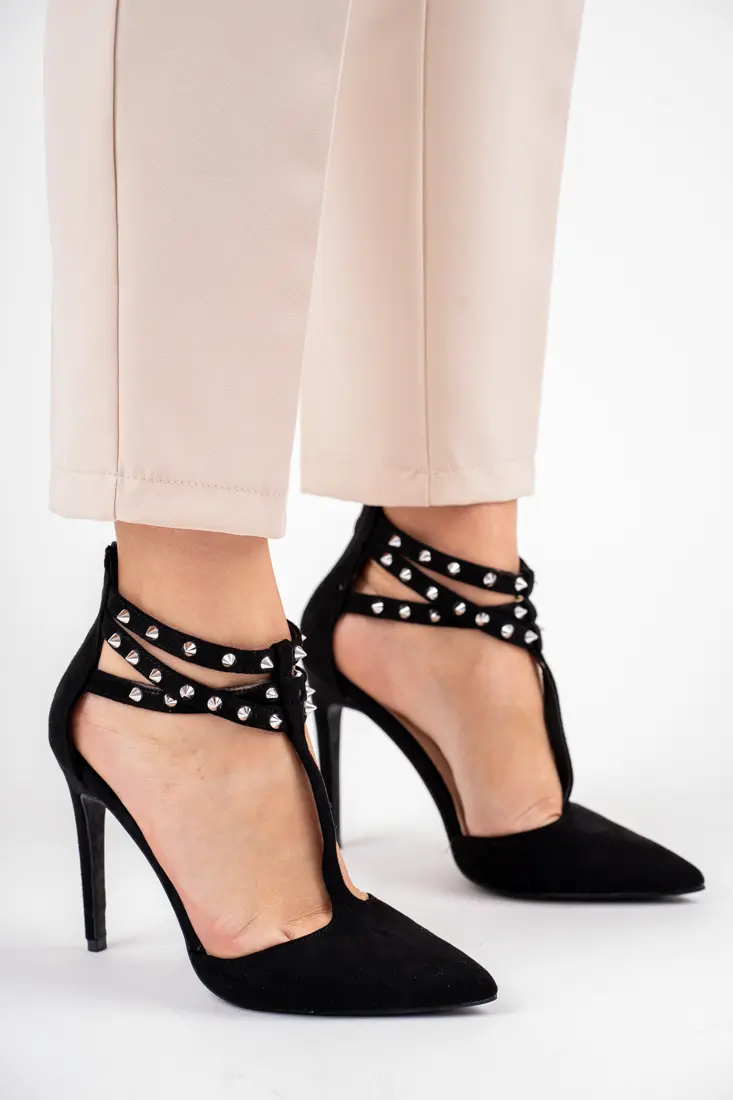 Czarne sandały damskie na szpilce zapinane wokół kostki