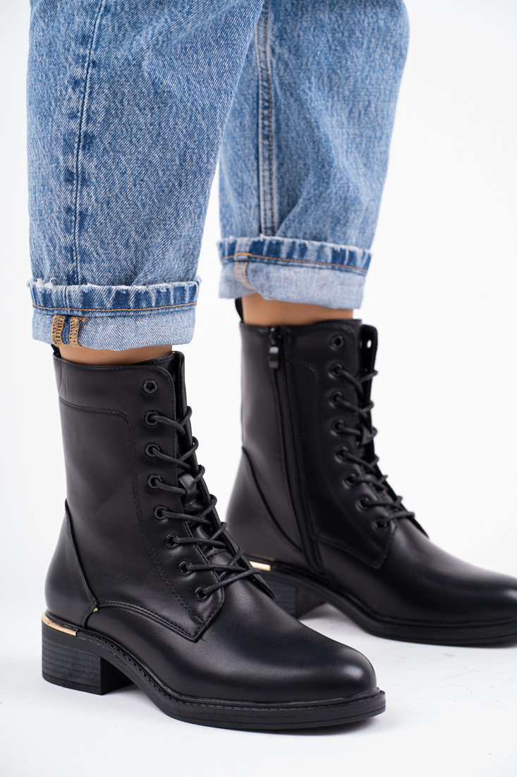 Sklep Czarne skórzane botki sznurowane sztyblety damskie Albi