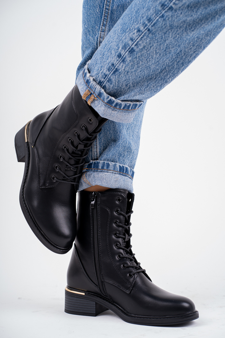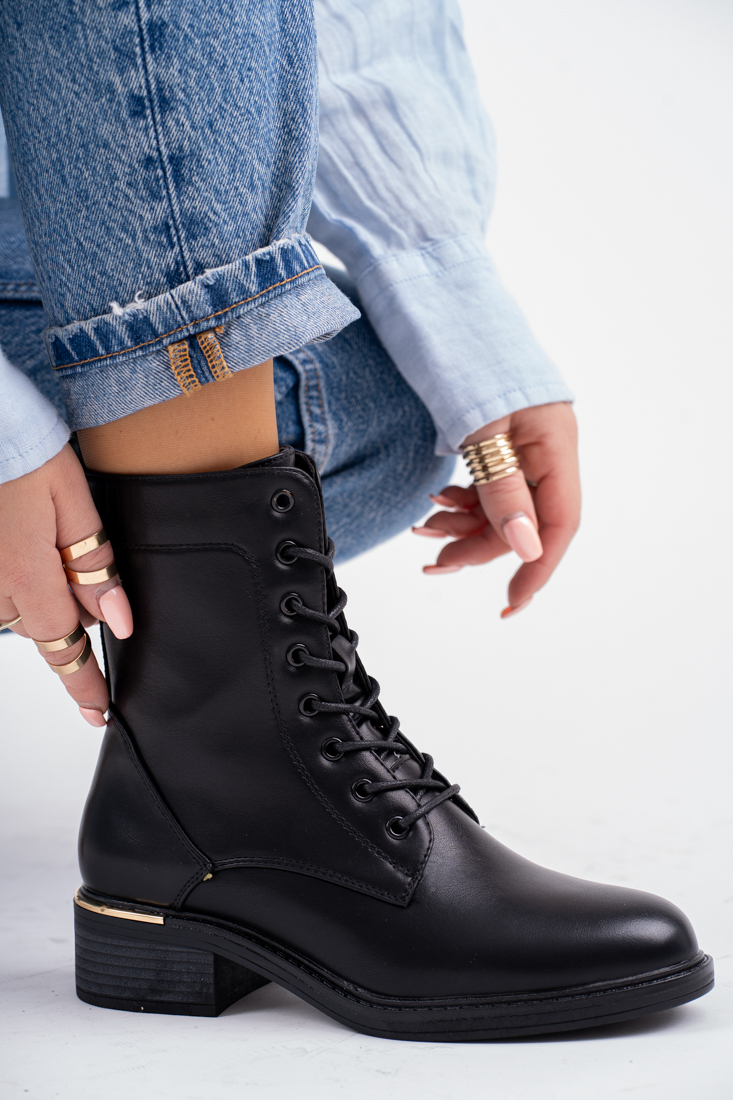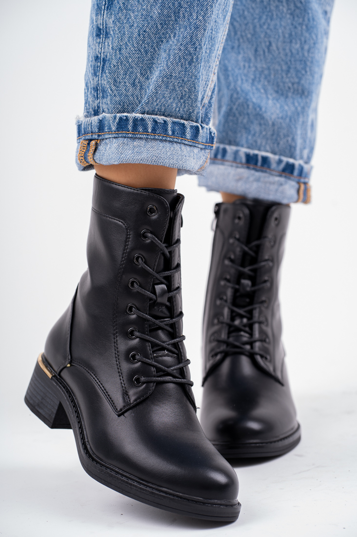 Czarne skórzane botki sznurowane sztyblety damskie Albi