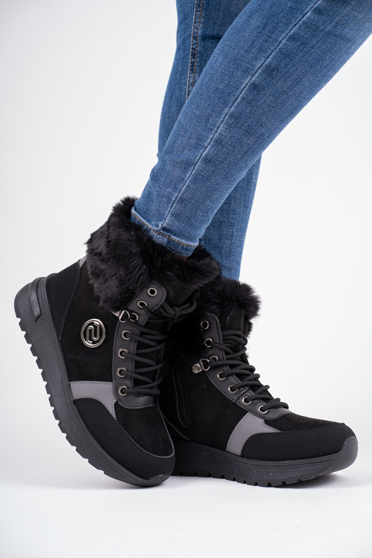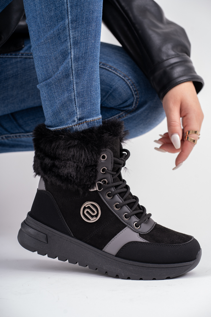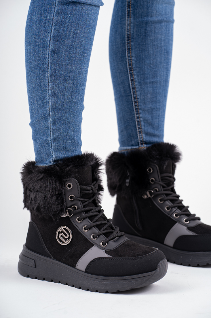 Czarne śniegowce botki damskie w sportowym stylu