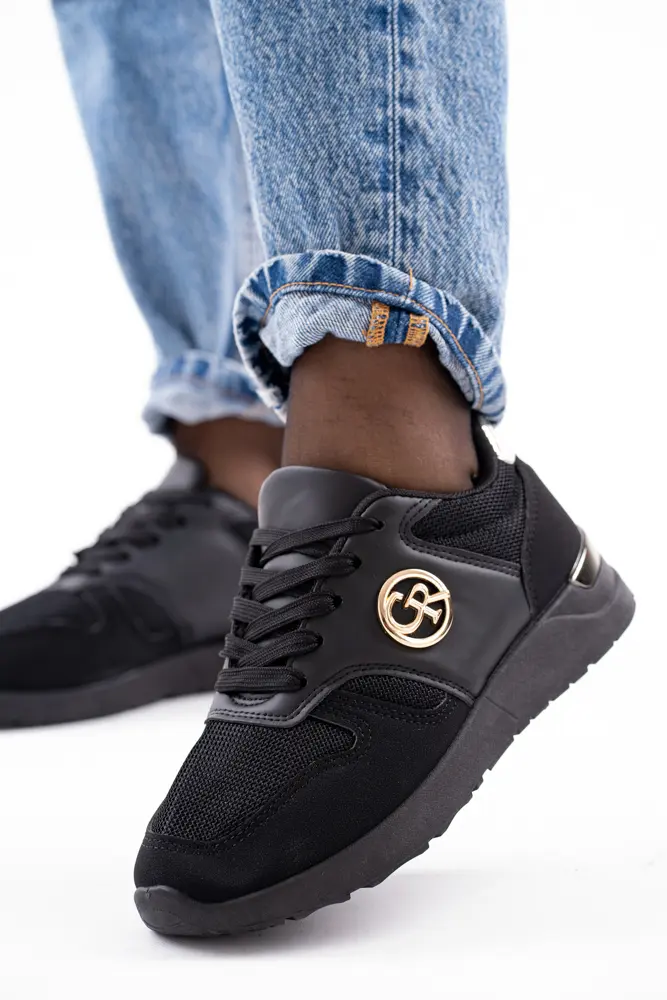Czarne buty sportowe sneakersy z złotą wstawką Taroma